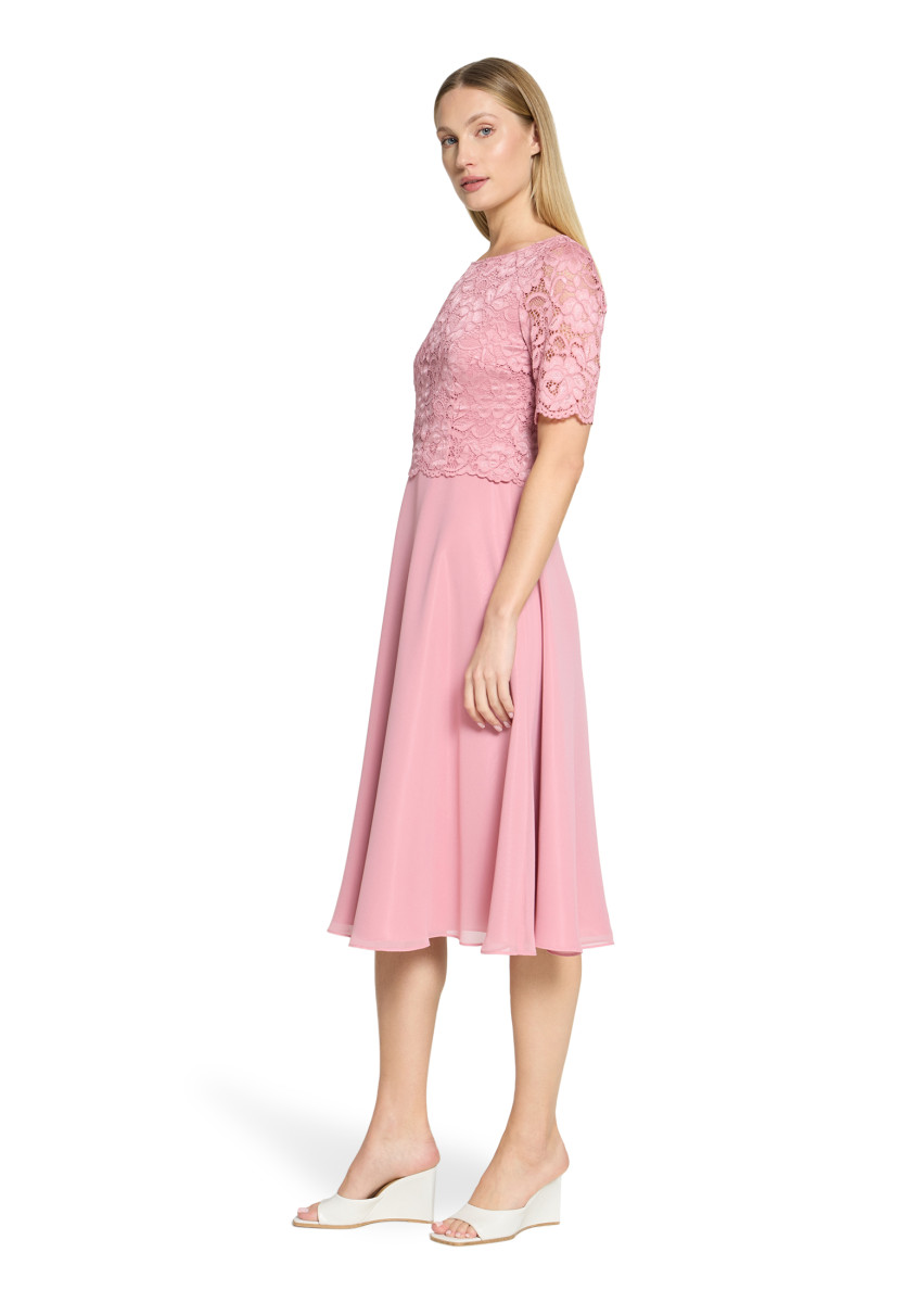 Passform: A-Linie | Gesamtlänge: 118 Cm | Länge Ab Taille: 76 Cm | Feinmaterial: Materialmix, Chiffon, Spitze | Ärmel: Halbarm | Ausschnitt: Rundhalsausschnitt | Längeninfo: Midi | Verschluss: Reißverschluss | Muster: Uni | Futter: 100% Polyester | Oberteil: 90% Polyamid, 10% Elasthan | Unterteil: 100% Polyester