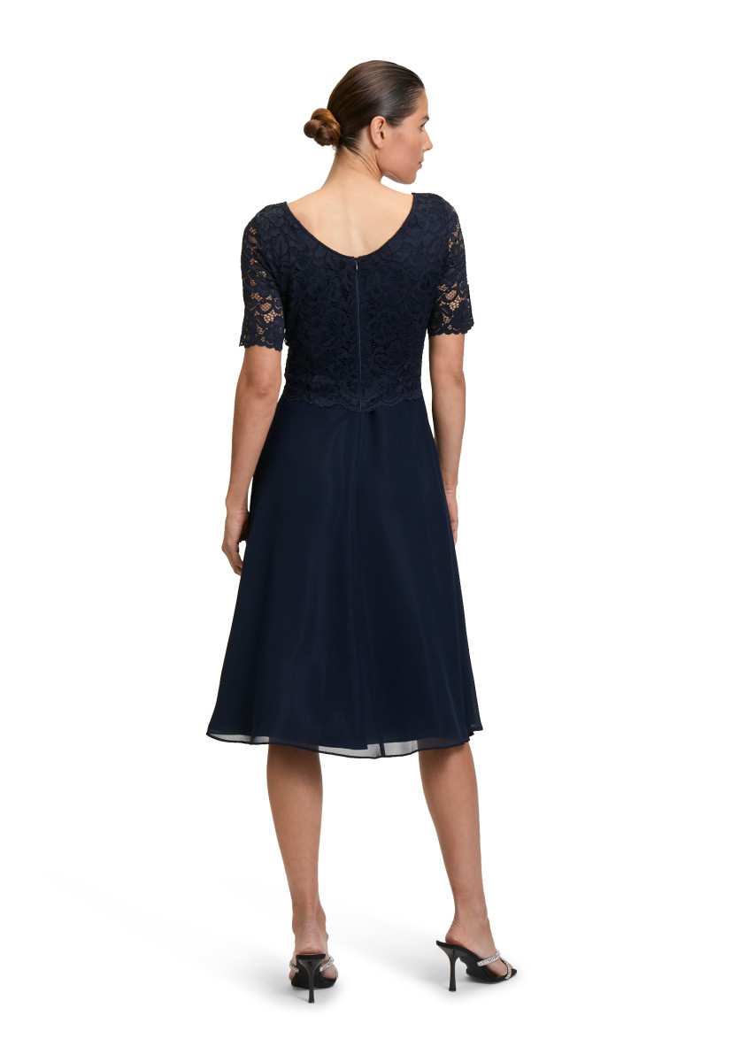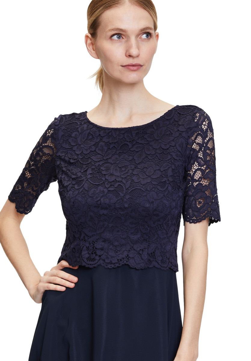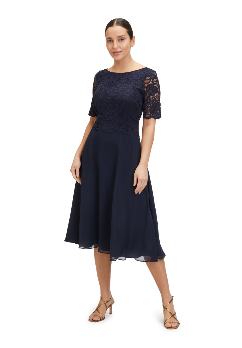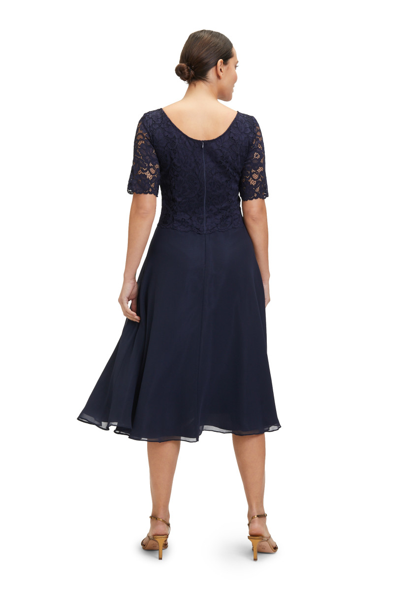 Passform: A-Linie | Gesamtlänge: 118 Cm | Länge Ab Taille: 76 Cm | Feinmaterial: Materialmix, Chiffon, Spitze | Ärmel: Halbarm | Ausschnitt: Rundhalsausschnitt | Längeninfo: Midi | Verschluss: Reißverschluss | Muster: Uni | Futter: 100% Polyester | Oberteil: 90% Polyamid, 10% Elasthan | Unterteil: 100% Polyester