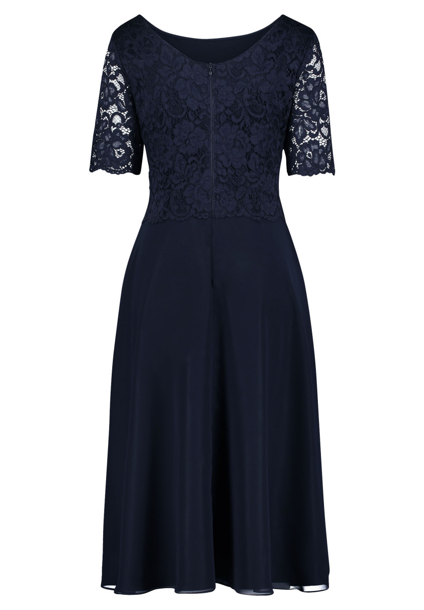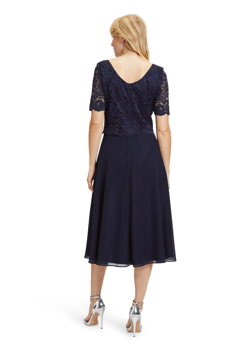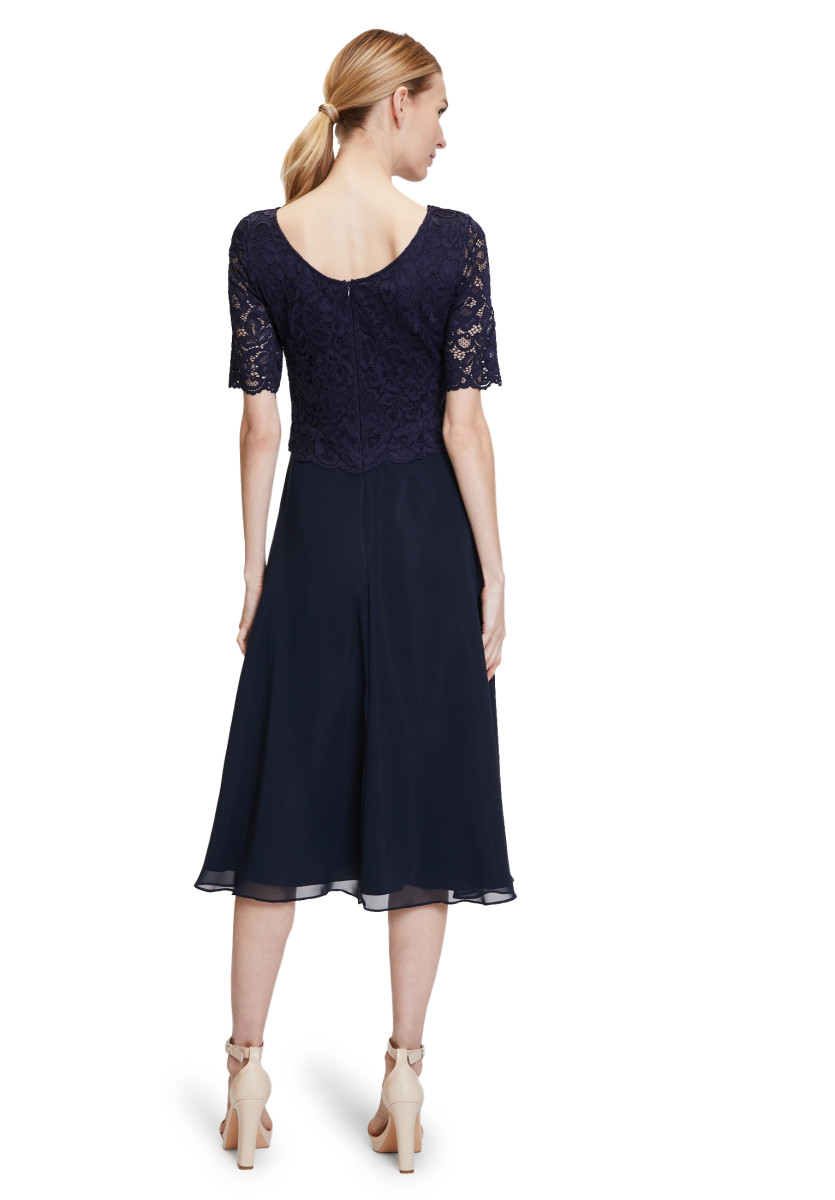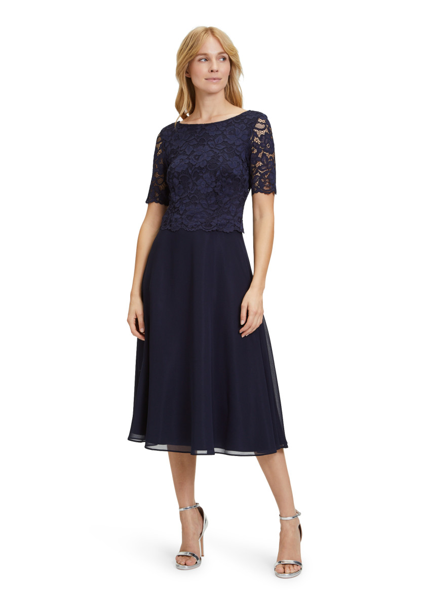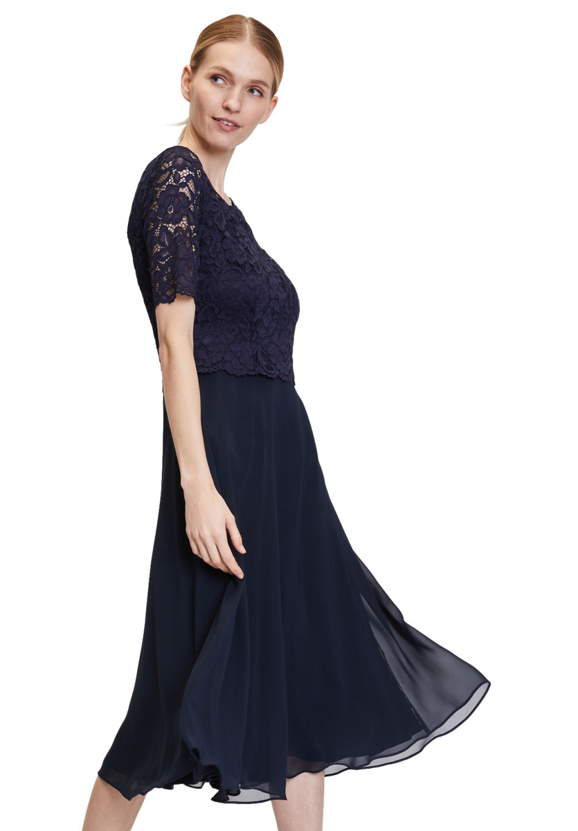 Passform: A-Linie | Gesamtlänge: 118 Cm | Länge Ab Taille: 76 Cm | Feinmaterial: Materialmix, Chiffon, Spitze | Ärmel: Halbarm | Ausschnitt: Rundhalsausschnitt | Längeninfo: Midi | Verschluss: Reißverschluss | Muster: Uni | Futter: 100% Polyester | Oberteil: 90% Polyamid, 10% Elasthan | Unterteil: 100% Polyester