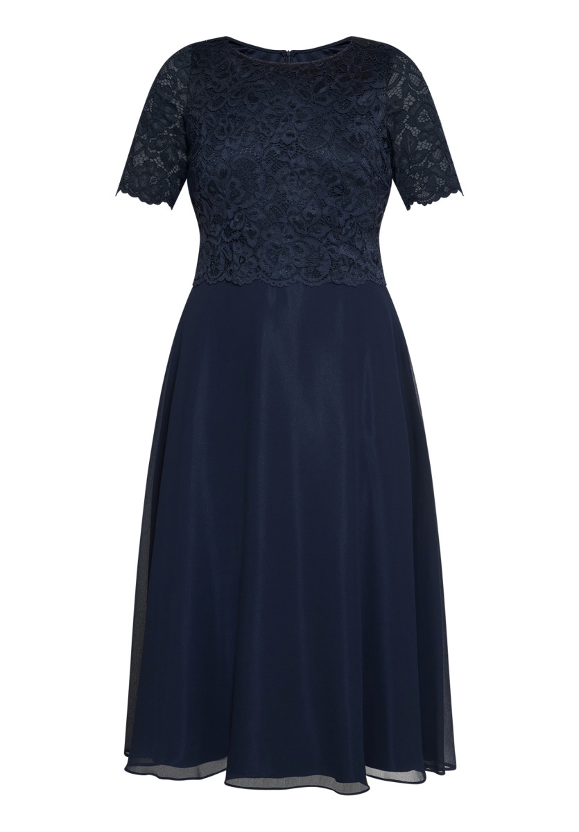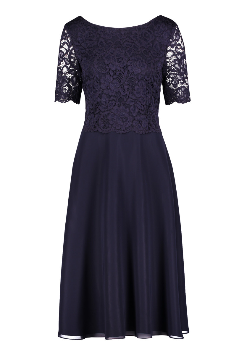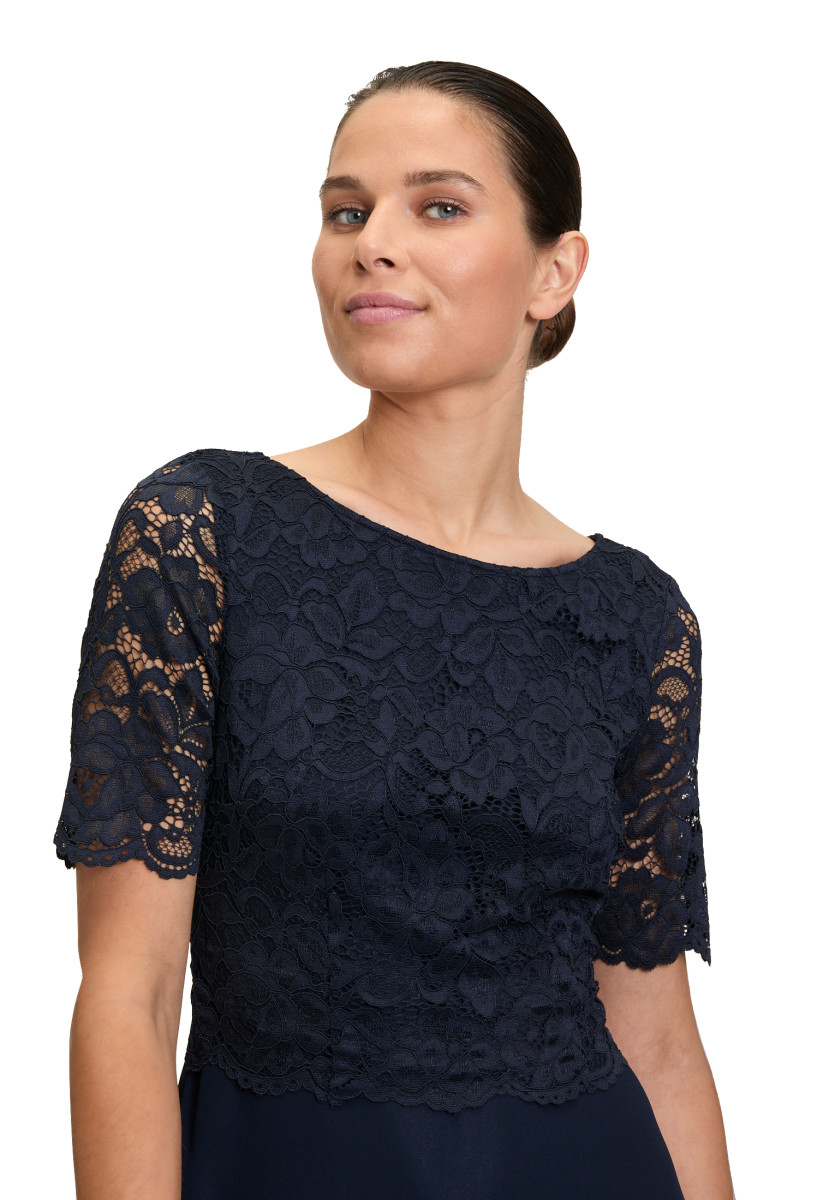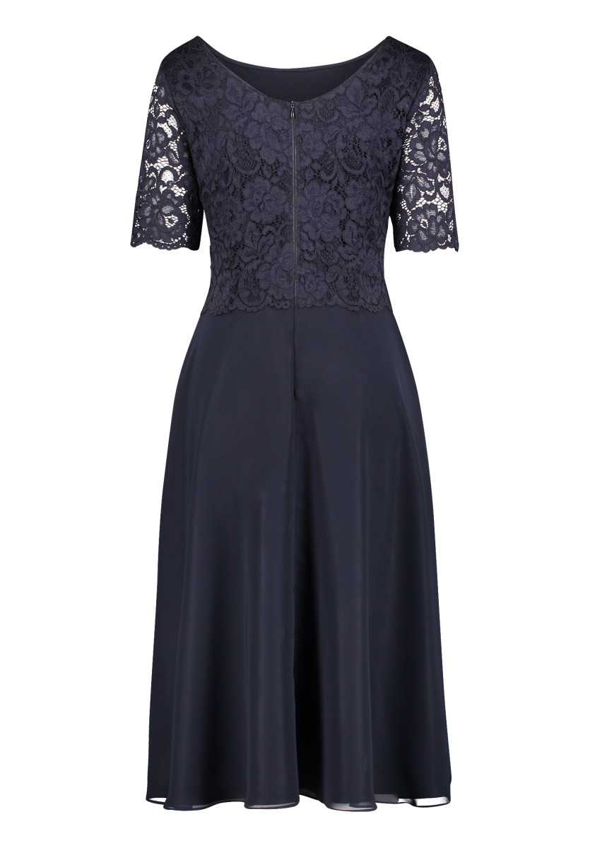 Passform: A-Linie | Gesamtlänge: 118 Cm | Länge Ab Taille: 76 Cm | Feinmaterial: Materialmix, Chiffon, Spitze | Ärmel: Halbarm | Ausschnitt: Rundhalsausschnitt | Längeninfo: Midi | Verschluss: Reißverschluss | Muster: Uni | Futter: 100% Polyester | Oberteil: 90% Polyamid, 10% Elasthan | Unterteil: 100% Polyester