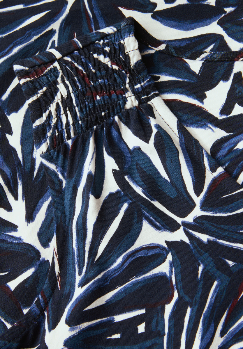 Das gemusterte Jersey-Kleid von CECIL für Damen bringt mit seinem grafischen Muster sommerliches Flair in deinen Kleiderschrank. Der V-Ausschnitt mit Detail und die Raffung an den Schultern setzen stilvolle Akzente. Dank der elastischen Jerseyqualität aus Viskose trägt sich das Kleid besonders bequem und sommerlich-leicht. Knielanges Kleid mit Raffung an den Schultern V-Ausschnitt mit Detail Ärmellos Grafisches Muster Jerseyqualität aus Viskose mit Stretchanteil