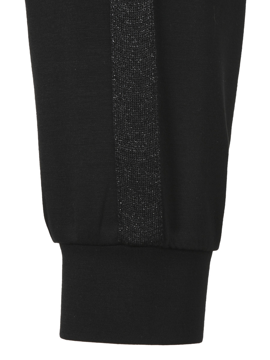Der erhöhte Stehkragen verleiht dem Kleid eine moderne Note und schützt bei kühleren Temperaturen. Ein besonderes Detail sind die seitlichen Streifen entlang der Ärmel, die mit einem subtilen Glitzereffekt versehen sind und dem ansonsten schlichten Design eine elegante Raffinesse verleihen.