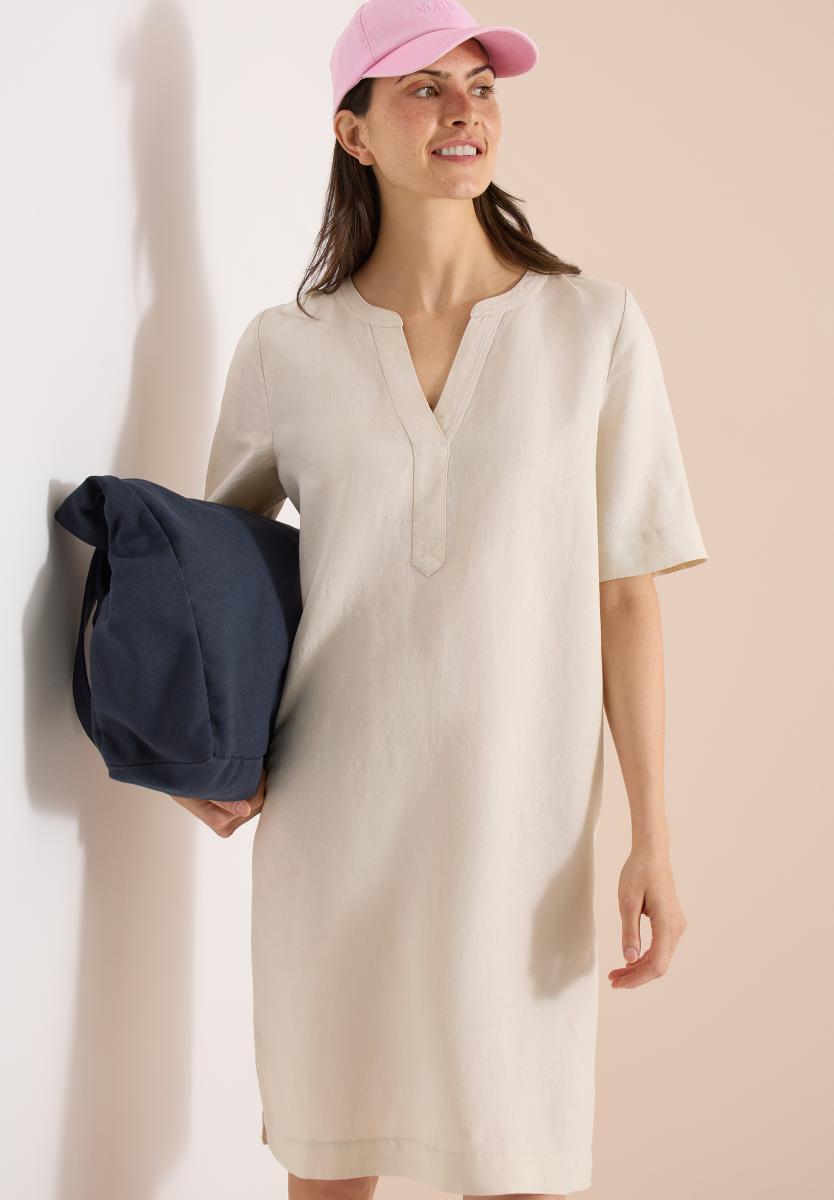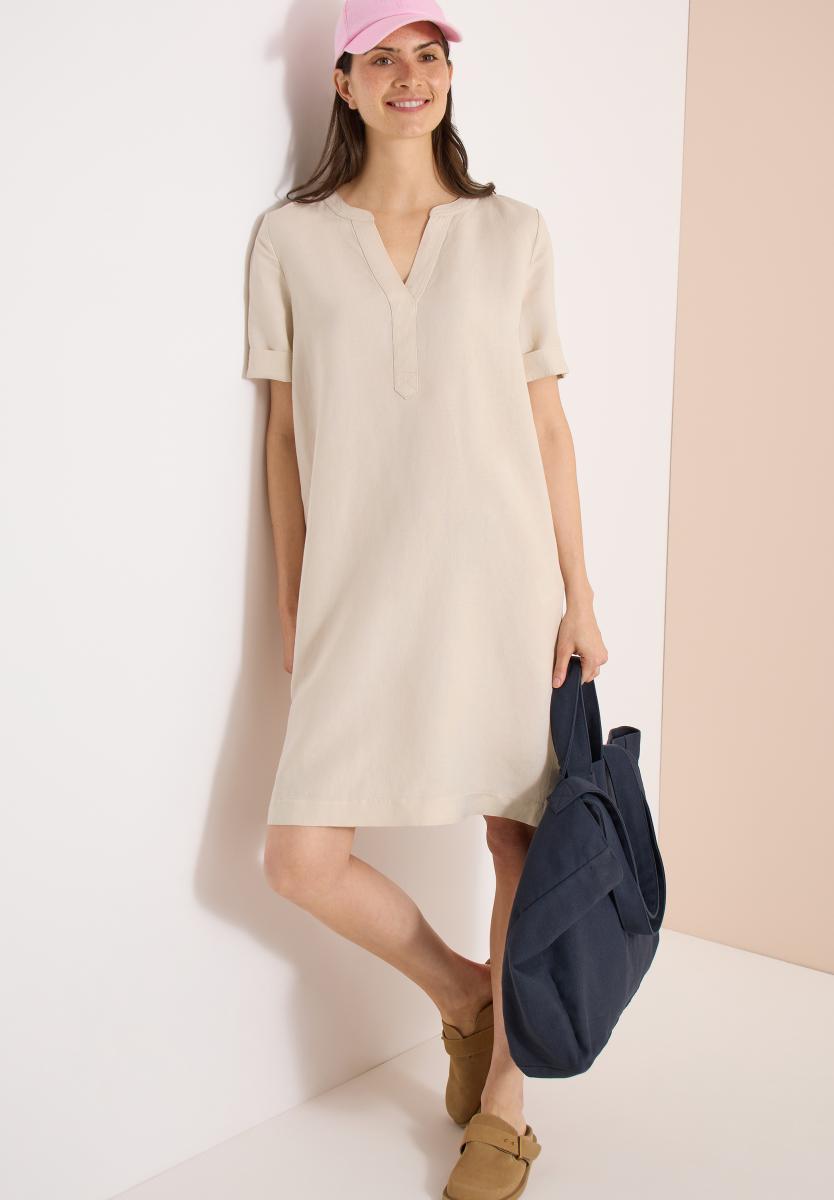 Knielanges Kleid mit femininer Silhouette und bequemem Sitz. Das zeitlose Design lässt sich vielseitig kombinieren und eignet sich für die Freizeit sowie für festlichere Anlässe. Der schlichte Schnitt sorgt für einen eleganten Look und lässt sich gut mit unterschiedlichen Accessoires kombinieren.Lief.-Art-Nr: B144750