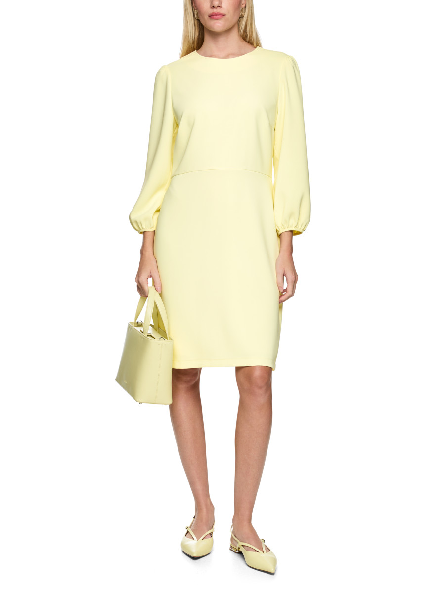 Tailliertes Kleid mit Rundhals | Knielanges, tailliertes Kleid mit elegantem Rundhalsausschnitt und nahtfeinem Reißverschluss auf der Rückseite. Voluminöse Ärmelabschlüsse mit Raffungen setzen feminine Akzente. Innenfutter sorgt für angenehmen Tragekomfort und perfekten Sitz.Körperbetont | Reißverschluss auf der Rückseite | Rundhalsausschnitt | Innenfutter | Das Model ist 179 cm groß und trägt N3/38.