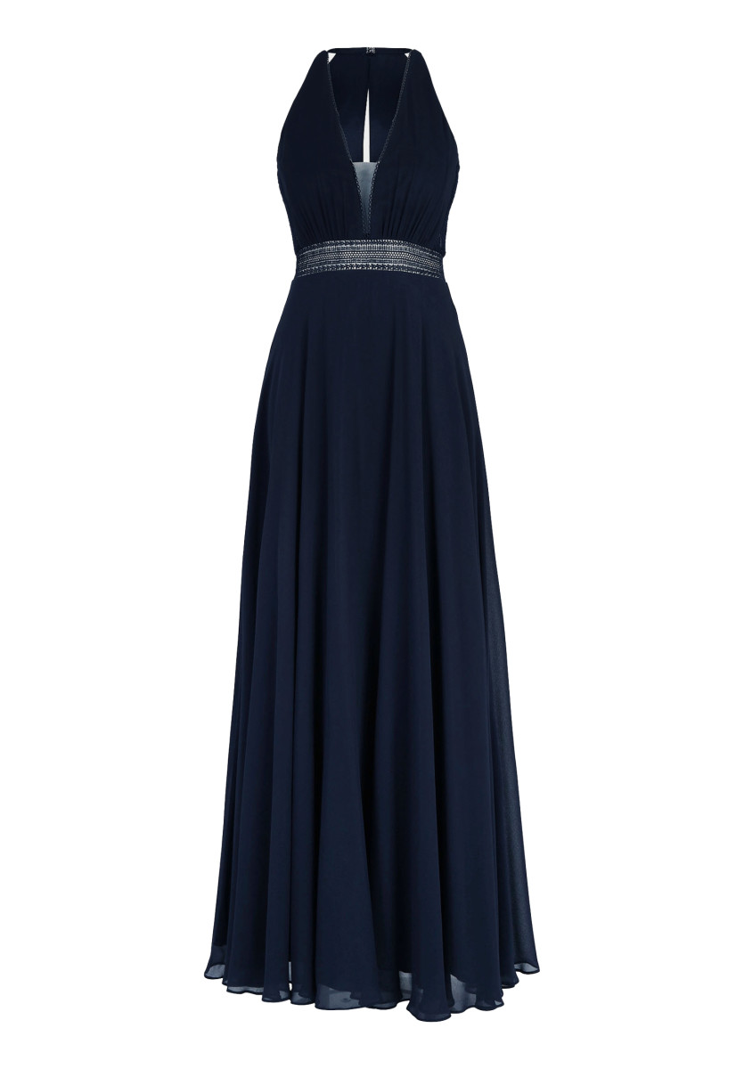 Ausgestellte Passform | Chiffon | Ärmellos | V-Ausschnitt | Maxi-Länge | Neckholder | Reißverschluss
