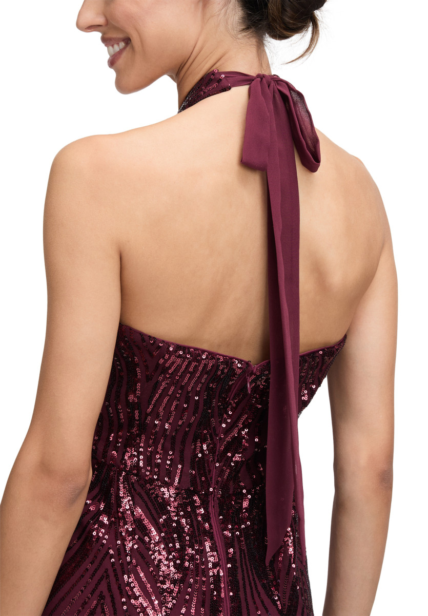 Passform: Figurbetont | Gesamtlänge: 152 cm | Länge ab Taille: 110 cm | Ärmellänge: Ohne Arm | Ausschnittform: Neckholder Ausschnitt | Längeninfo: Maxi | Materialart: Mesh | Verschluss: Reißverschluss | Muster: Uni | Futter: 100% Polyester | Besatz: 100% Polyester