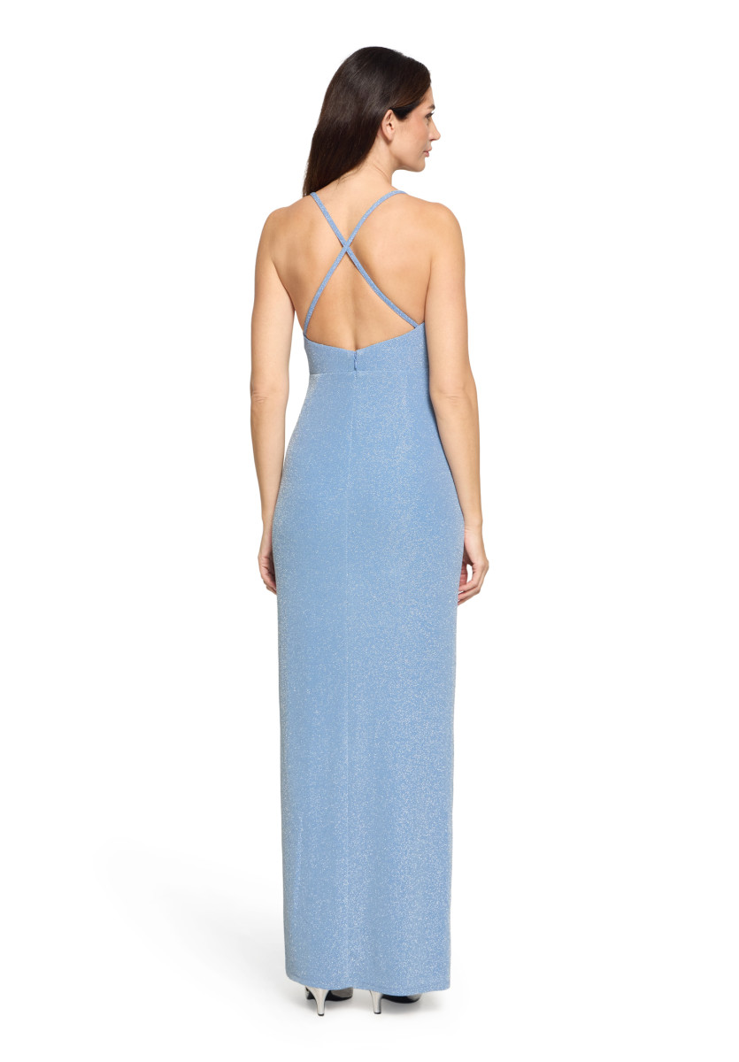 Dieses exquisite Abendkleid aus fließendem Jersey-Material ist die perfekte Wahl für besondere Anlässe und Abendveranstaltungen. Die figurbetonte Passform umschmeichelt die Silhouette, während der elegante Wasserfall-Ausschnitt, gehalten von zarten Spaghettiträgern, ein feminines Dekolleté in Szene setzt. Mit einer beeindruckenden Gesamtlänge von 154 cm (davon 112 cm ab der Taille) fällt das Kleid bodenlang und sorgt für einen glamourösen Auftritt. Der schlichte, unifarbene Look wird durch das hochwertige Jersey-Material und einen raffinierten Besatz aus Polyamid aufgewertet. Für ein leichtes An- und Ausziehen sorgt ein dezenter Reißverschluss. Das Kleid ist vollständig mit 100% Polyester gefüttert, was für einen angenehmen Tragekomfort und einen perfekten Fall des Stoffes sorgt. Ein zeitloses Kleidungsstück, das Eleganz und Tragekomfort meisterhaft vereint.