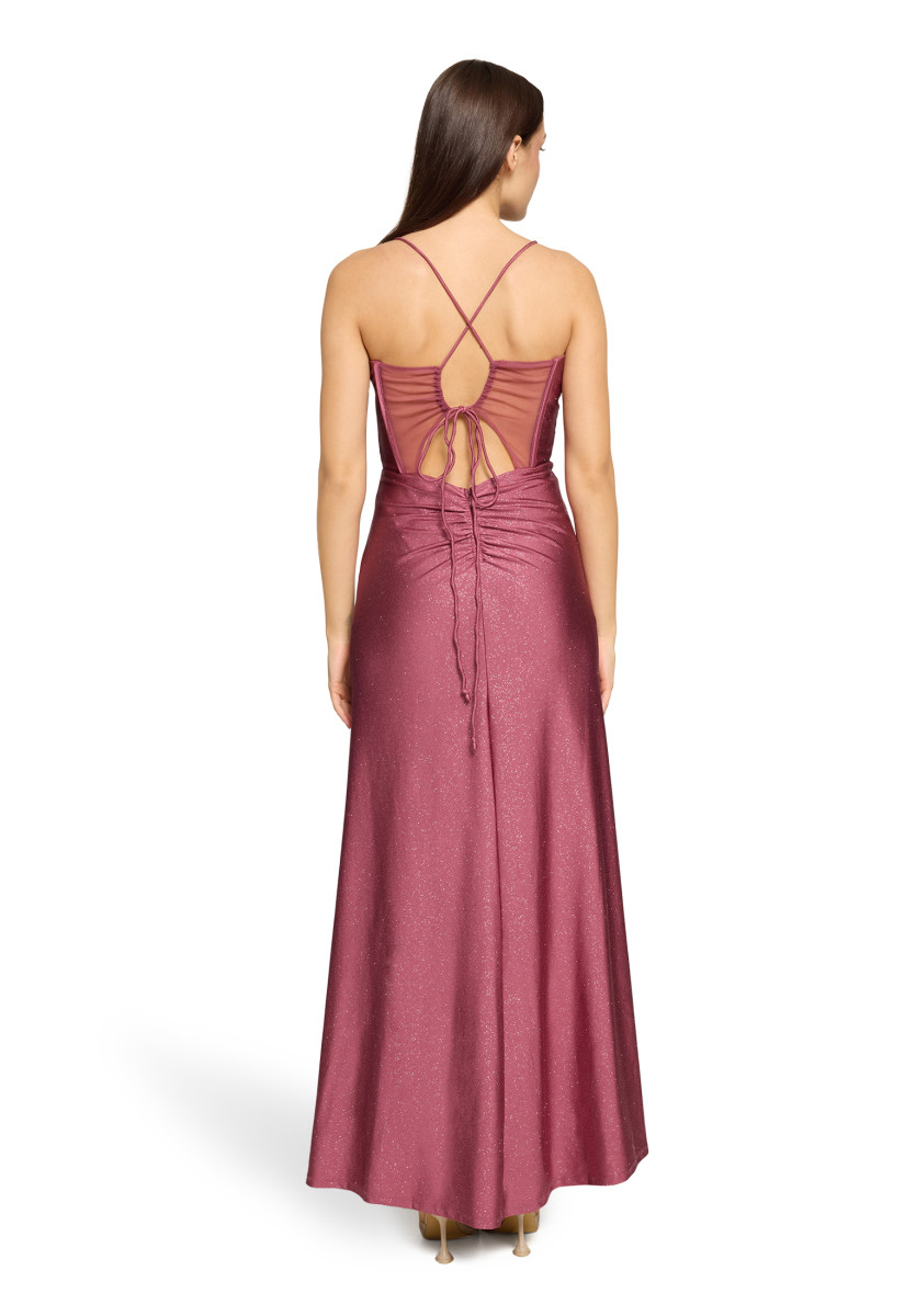 Passform: Figurbetont | Gesamtlänge: 154 cm | Länge ab Taille: 112 cm | Ärmel: Ärmellos | Längeninfo: Maxi | Trägerart: Spaghettiträger | Verschluss: Schnürung | Muster: Uni | Futter: 100% Polyester | Besatz: 100% Polyamid