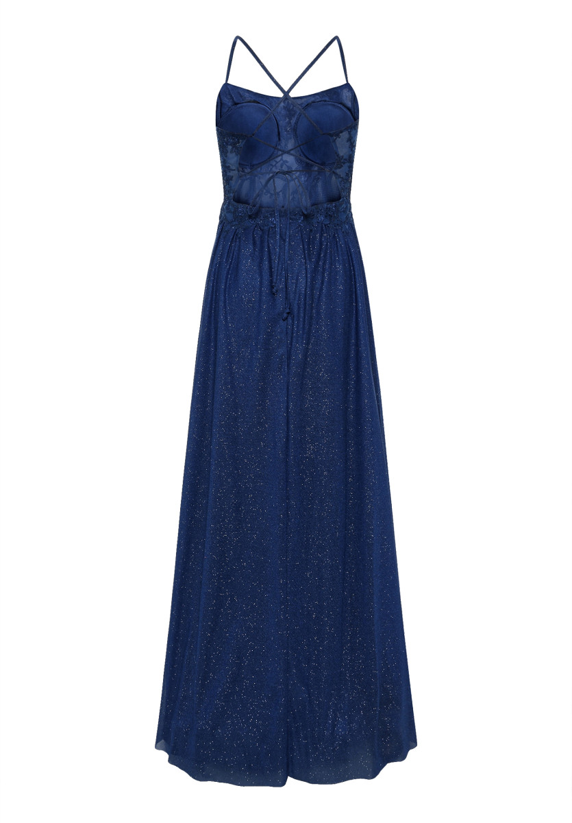 Passform: Ausgestellt | Gesamtlänge: 157 cm | Länge ab Taille: 115 cm | Ärmellänge: Ohne Arm | Ausschnittform: Rundhals-Ausschnitt | Längeninfo: Maxi | Materialart: Polyester | Trägerart: Spaghettiträger | Verschluss: Schnürung | Muster: Uni | Futter: 100% Polyester