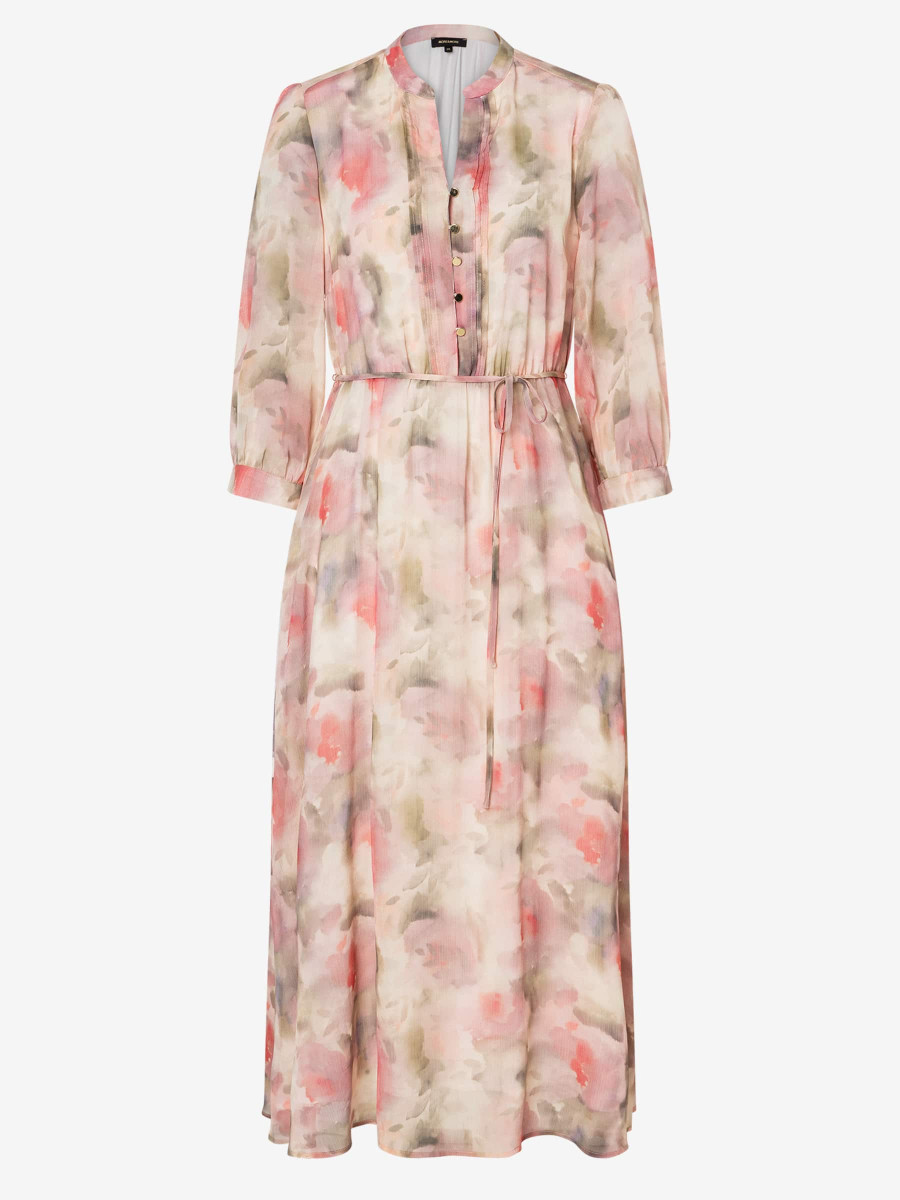 Das traumhaft-schöne Maxikleid von MORE & MORE mit zartem Blumenprint und 3/4 langen Ärmeln können Sie sowohl lässig mit Jeansjacke und Sneakers stylen als auch elegant mit kurzer Boucléjacke und Heels.