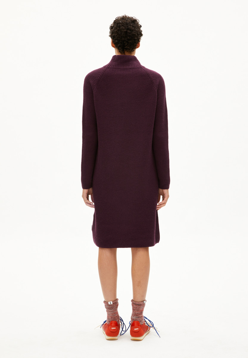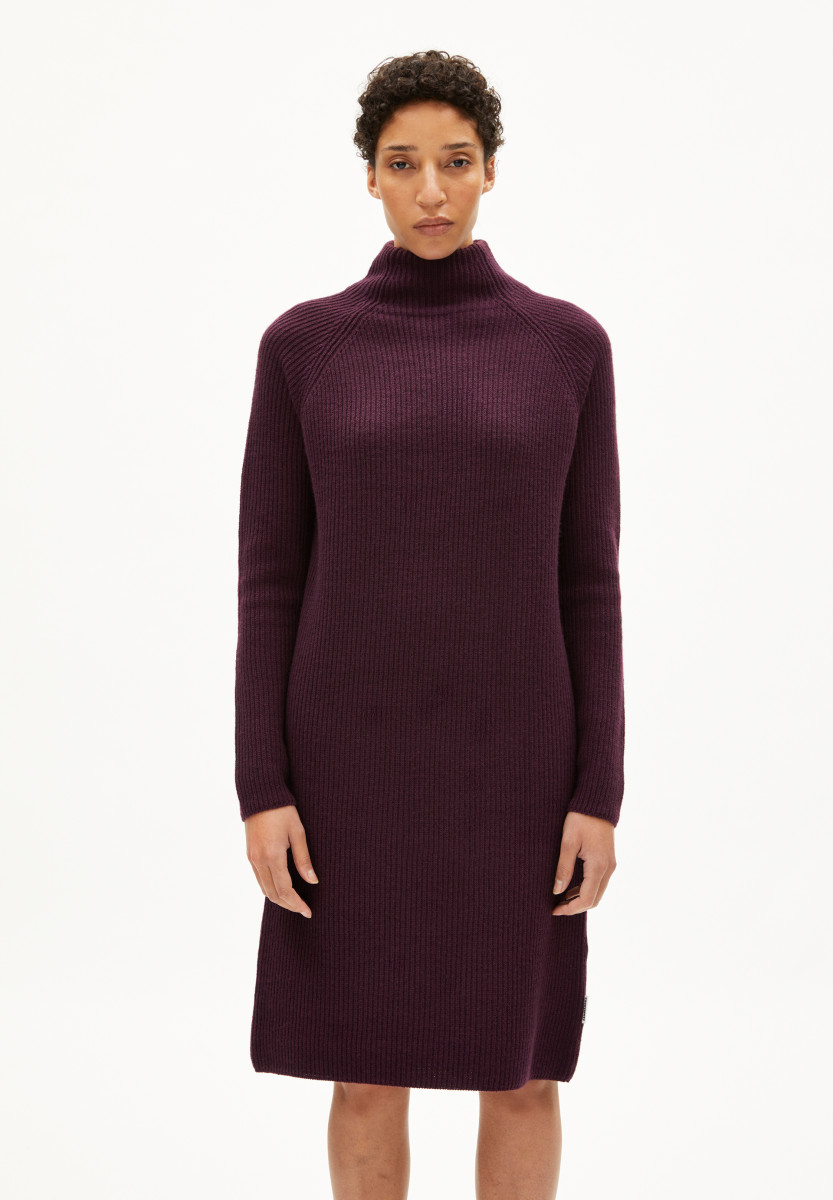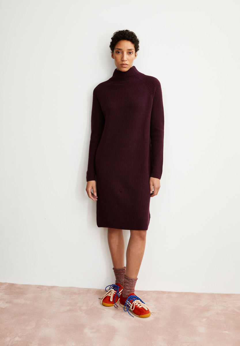 Das Strickkleid MILLAANA in mittelschwerem, einfarbigem Strick und knielangem Schnitt bietet dir eine lässige, bequeme Passform. Der Stehkragen verleiht dem Kleid eine stilvolle Note. Hergestellt aus Bio-Wolle und Bio-Baumwolle hält es dich angenehm warm und überzeugt durch hohen Tragekomfort.