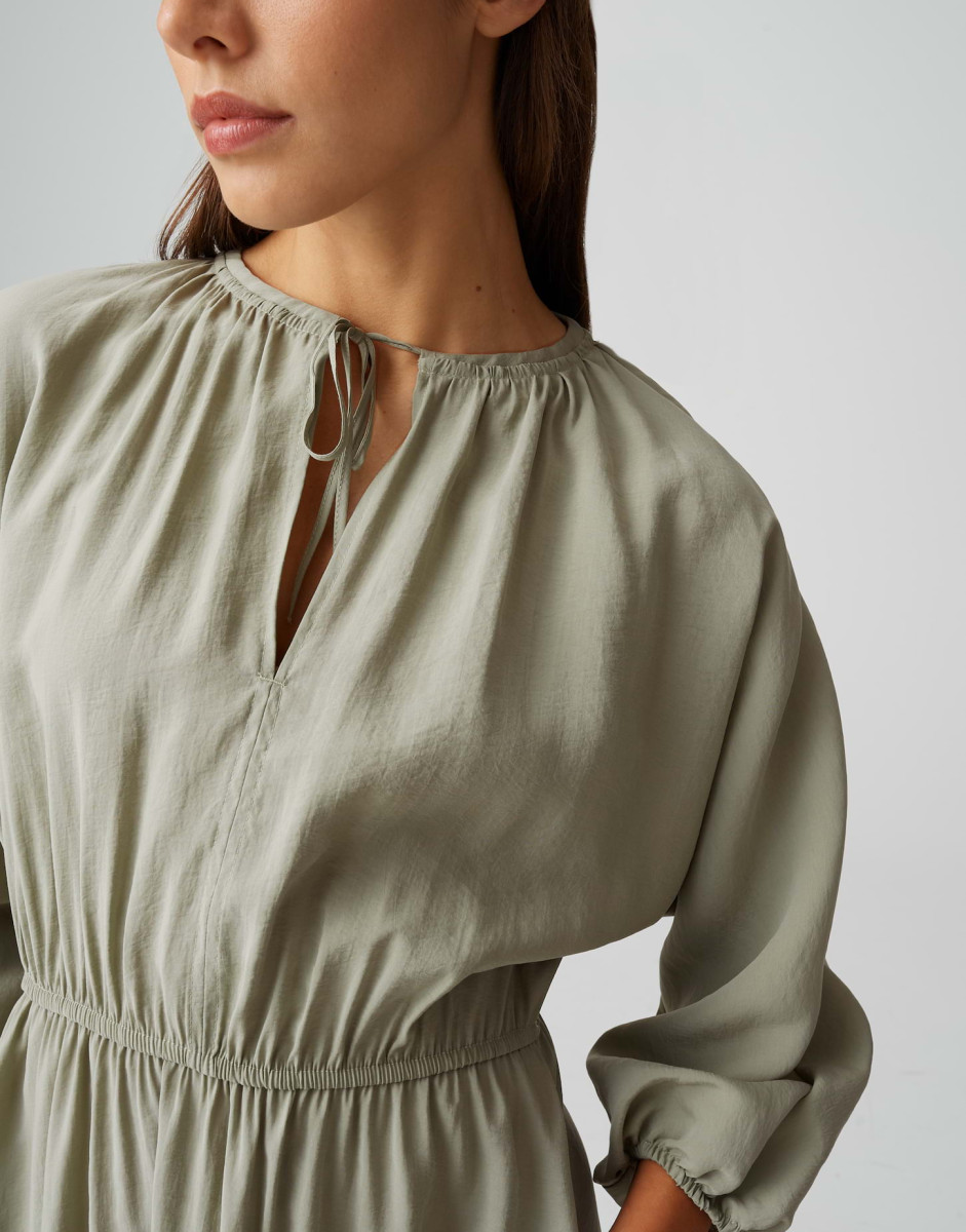 Ballonärmel geben dem Midikleid WORTY eine besondere Präsenz und machen es zu einem echten Lieblingsstück für Tage, an denen man sich besonders fühlen möchte. Die fließende Silhouette mit regulierbarer Taille, zarten Raffungen und dem entspannten Tunikalook umspielt sanft die Figur und verleiht einen verspielten, zugleich modernen Charakter.