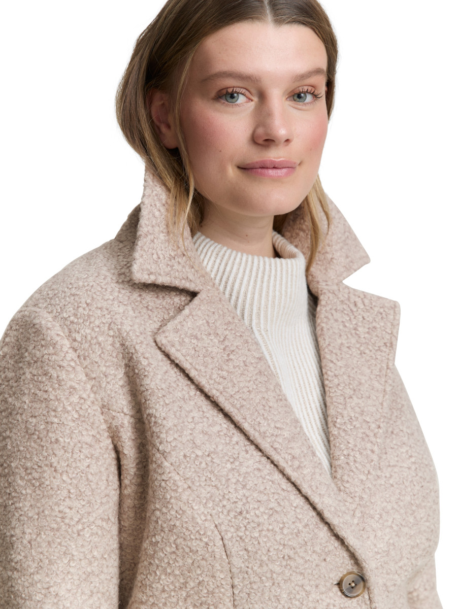 Klassischer Mantel aus strukturiertem Bouclé mit Reverskragen und seitlichen Eingriffstaschen. Kleiner Schlitz hinten am Saum sorgt für mehr Bewegungsfreiheit. Regular Fit - gerader Schnitt