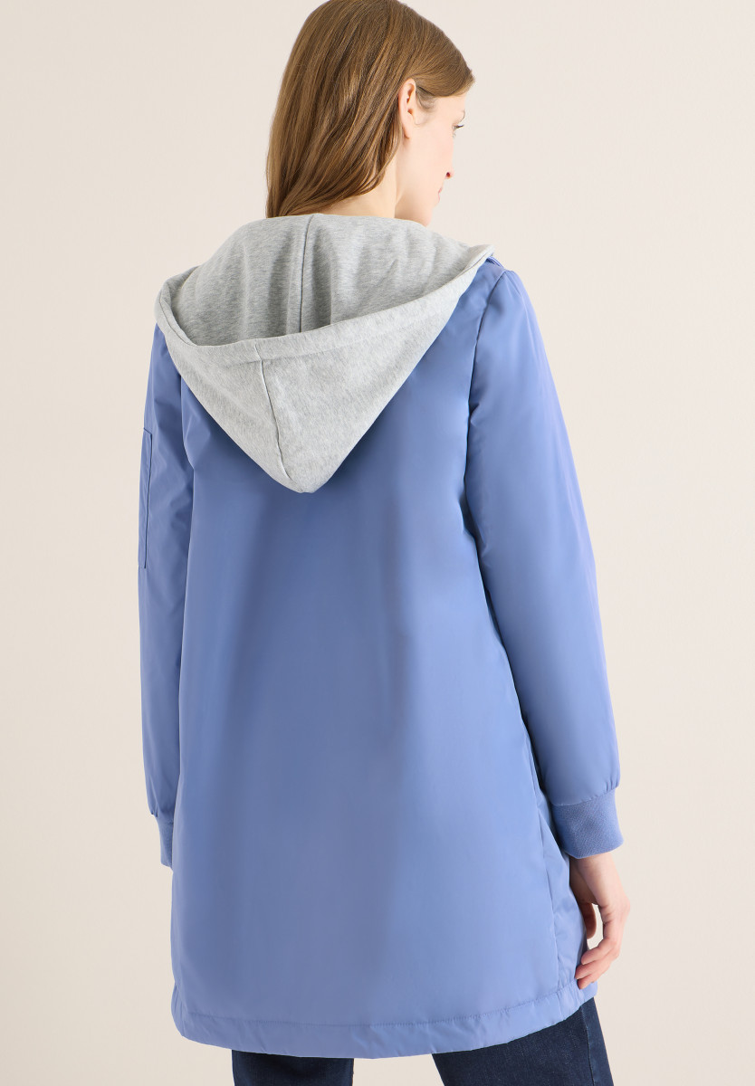 Der lange Blouson von CECIL für Damen ist dein Begleiter für kühle und wechselhafte Tage. Die Jacke punktet mit modernem Design und bequemer Passform, sie hat einen 2-Wege-Reißverschluss und praktische seitliche Taschen mit Reißverschluss. Die Kapuze mit Tunnelzug ist abnehmbar und überzeugt zudem durch ihre angenehm weiche Sweatqualität. Ein Reißverschlussdetail am Ärmel verleiht der jacke trotz des verlängerten Schnitts die typische Blouson-Optik. Ideal für entspannte Looks mit sportivem Touch. Memory Blouson Outdoor Abnehmbare Kapuze aus softem Sweatmaterial 2-Wege-Reißverschluss Modisch und bequem Material: Obermaterial: 100% Polyester; Futter: 100% Polyester; Füllung: 100% Polyester, Kapuze: 66% Polyester, 34% Baumwolle