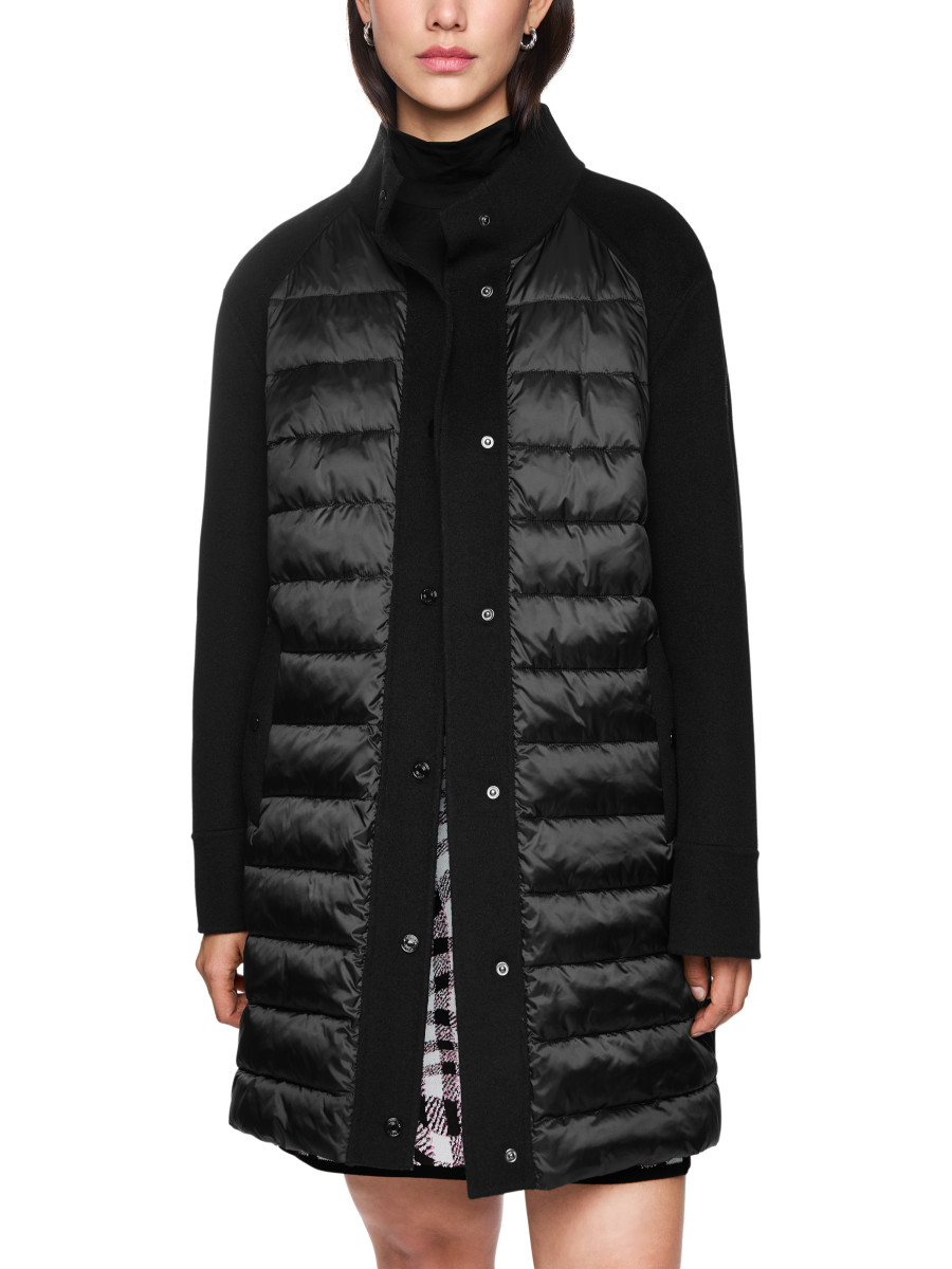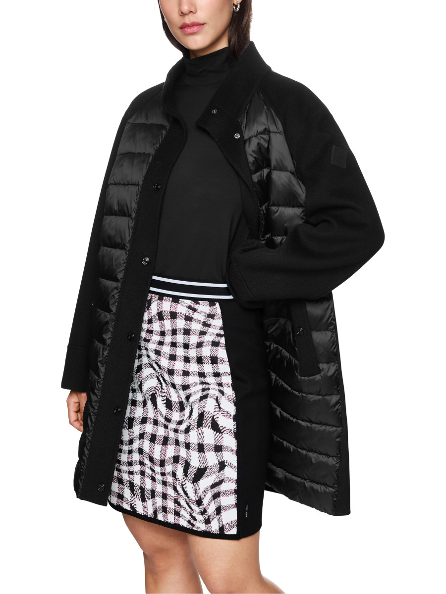 Outdoor Mantel mit Wattierung | Outdoor-Mantel mit leichter Steppung auf der Vorderseite und geradem Schnitt. Der Mantel ist in etwa knielang und wird mithilfe von Druckknöpfen geschlossen. Seitlich befinden sich praktische Taschen. Er besticht durch die feine Wollmischung und den angenehmen Stehkragen. Gerade Form | Mit Druckknöpfen | Ungefüttert | Weiche Wattierung | Das Model ist 179 cm groß und trägt N3/38.