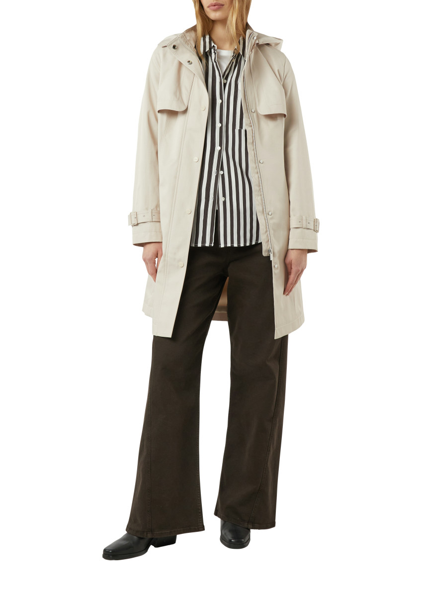 Der klassische Trenchcoat überzeugt mit abnehmbarer Kapuze und einem Bindegürtel für eine individuell taillierte Silhouette. Sein klares Design lässt sich vielseitig zu formellen wie zu lässigen Outfits kombinieren. Durchdachte Details und saubere Verarbeitung machen ihn zu einem praktischen Begleiter für wechselhafte Tage.Lief.-Art-Nr: 2177141