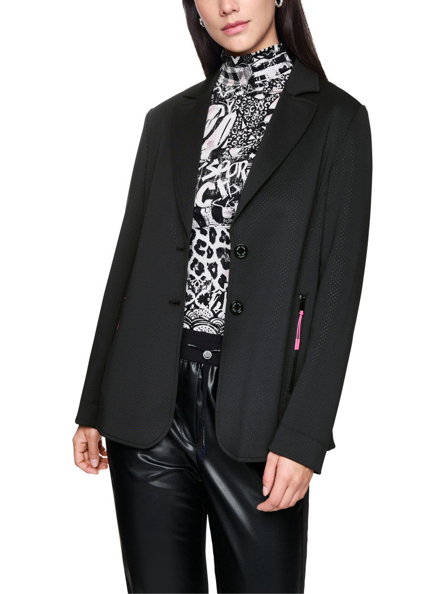 Sportlicher Blazer in Netz-Optik | Sportiver Blazer mit figurnahem Schnitt und besonderer Netz-Optik. Der einreihige Blazer besitzt ein Revers und seitliche Taschen, die mit einem kontrastreichen Reißverschluss versehen sind. Das macht ihn zu einer perfekten Ergänzung einerseits für sportliche oder auch für elegante Outfits. Figurnahe Silhouette | Ungefüttert | Mit Ziernähten | Einreiher | Das Model ist 179 cm groß und trägt N3/38.
