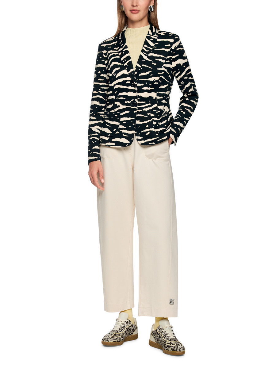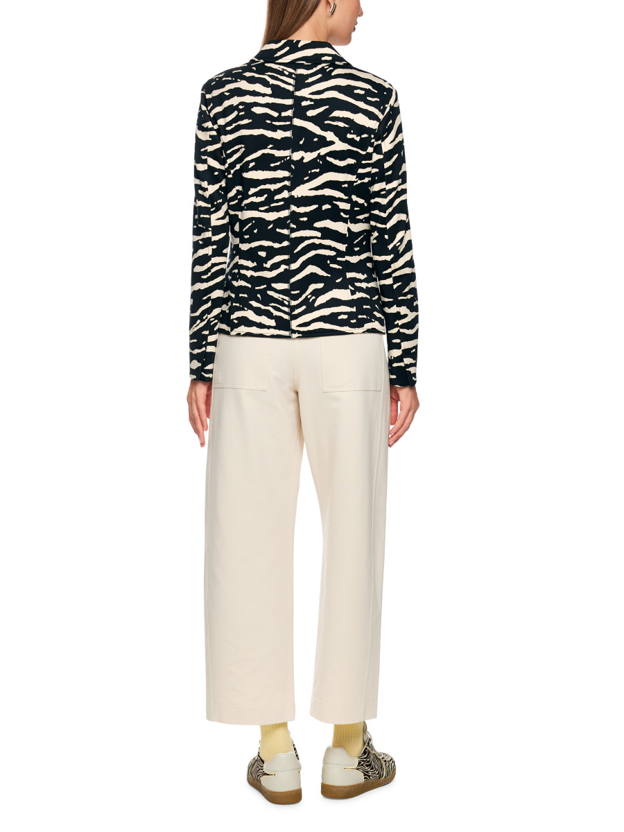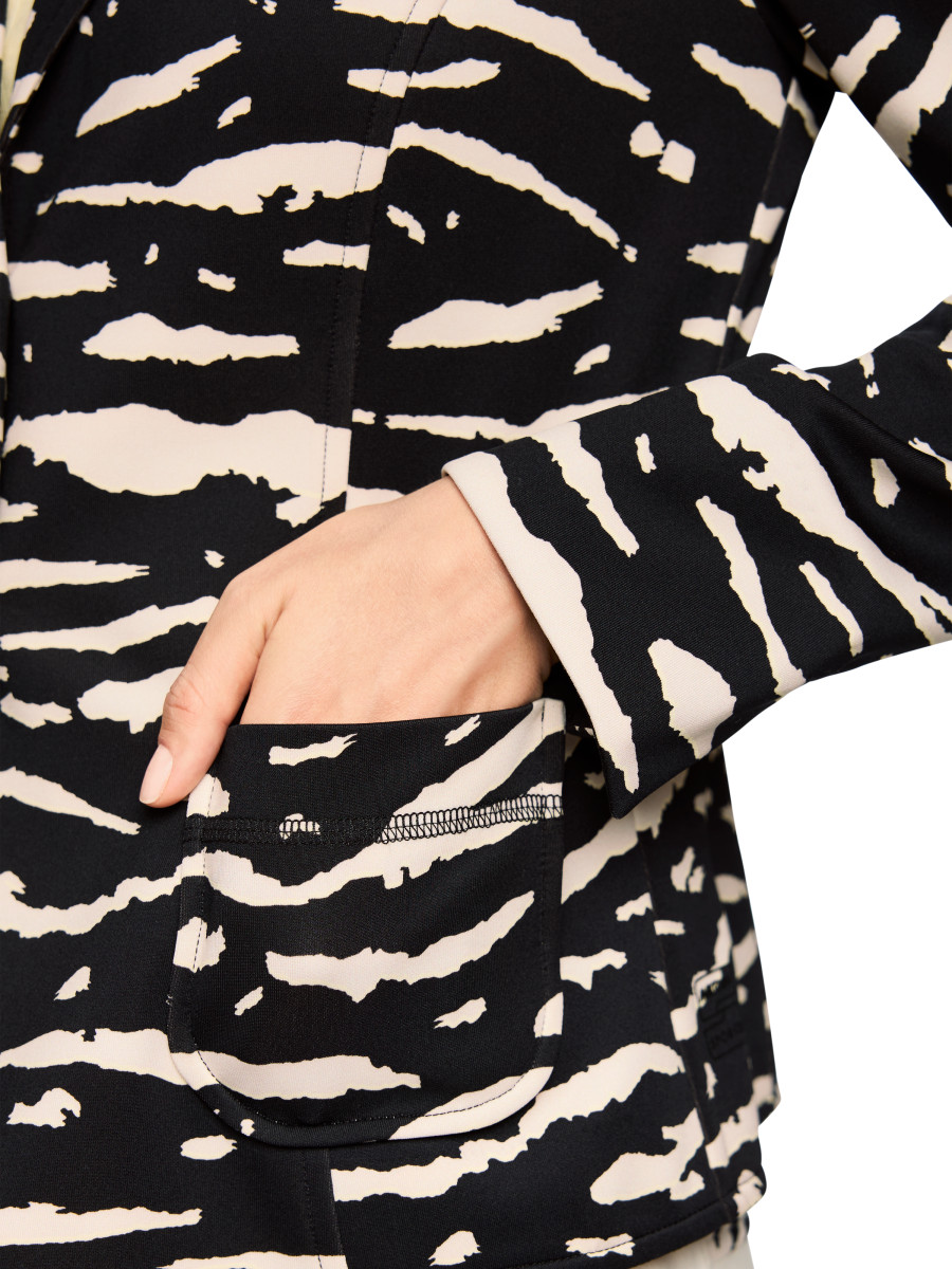Der all-over bedruckte Animal Print macht diesen Blazer zu einem echten Highlight. Der Blazer ist gerade geschnitten und besitzt klassische Elemente. Das weiche Scuba-Jersey Material bringt einen angenehmen Tragekomfort mit sich. Geschlossen wird der Blazer durch eine einreihige Knopfleiste. Zusätzlich befinden sich auf der Vorderseite kleine aufgesetzte Taschen. Der Blazer ist ungefüttert.