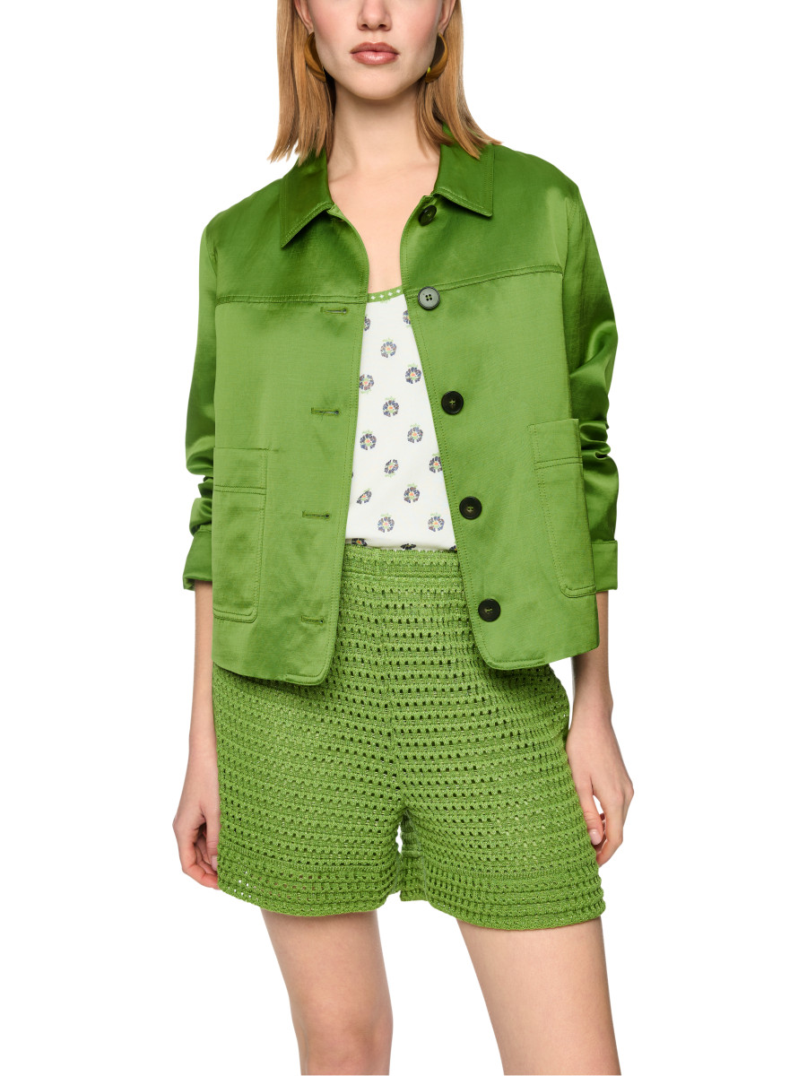 Locker geschnittene Jacke mit schimmerndem Materialmix aus Viskose, Leinen und Baumwolle, die modernen Look und hohen Tragekomfort vereint. Aufgesetzte Taschen, ein klassischer Knopfverschluss und der gerundete Saum mit rückseitigem Schlitz verleihen der Silhouette eine lässig-elegante Note. Vielseitig kombinierbar eignet sich die Jacke für sowohl legere als auch gepflegte Outfits.Lief.-Art-Nr: AC 31.24 W41