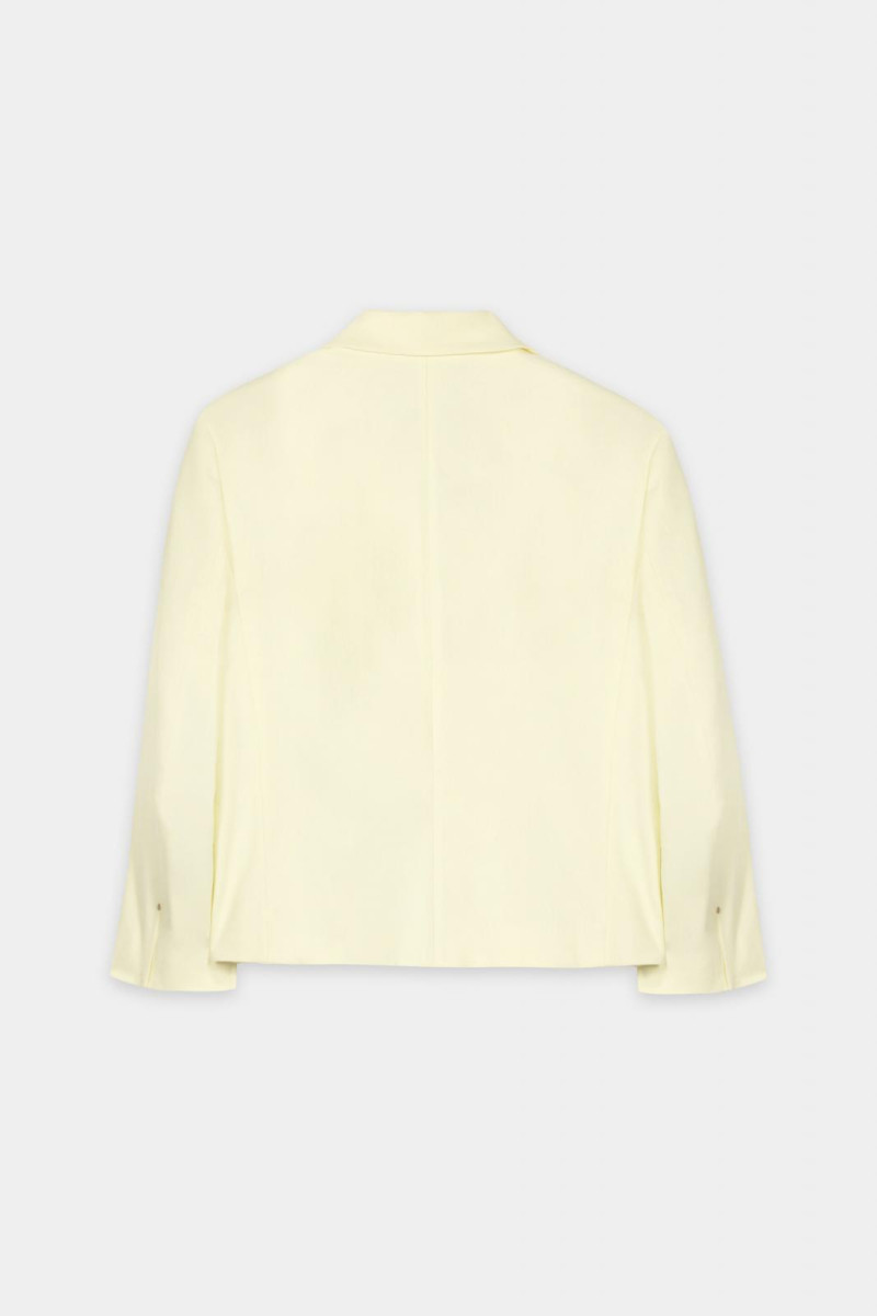 Leichte Blazerjacke aus sommerlichem Twill mit Stretch-Effekt. Der Blazer besitzt einen lockeren, leicht verkürzten Schnitt mit ¾-langen Ärmeln, zwei angedeuteten Brusttaschen und zwei aufgesetzten Eingrifftaschen.