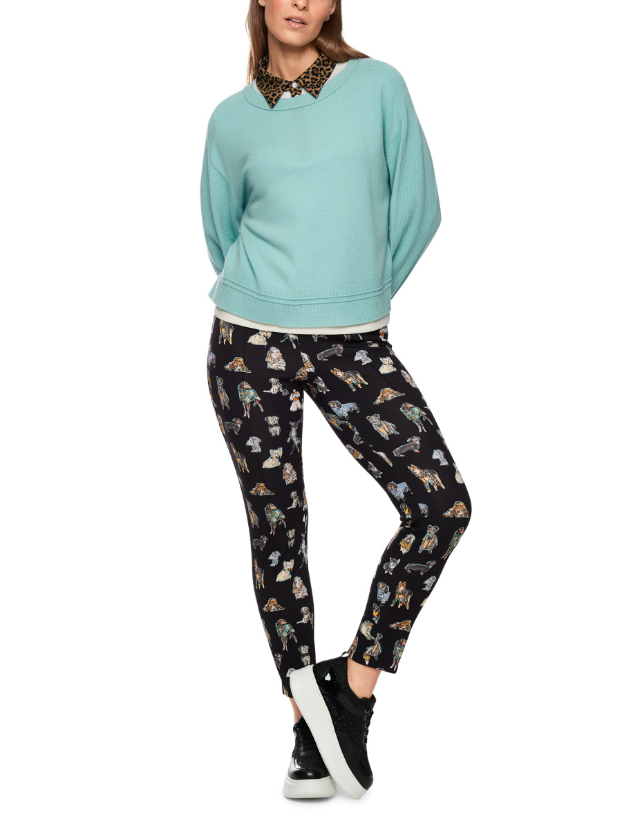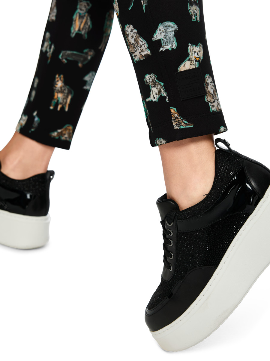 Enge 7/8-Hose SOFIA mit Gummibund|Enge Hose Modell SOFIA in 7/8-Länge aus elastischem Scuba-Jersey mit Dogs-Print. Der bequeme Schlupfbund ist im Leodessin abgesetzt. Eine mittige Paspelnaht auf der Vorderseite streckt optisch das Bein. Modern, komfortabel und figurbetont.|Enge Schlupfform|7/8-Länge|Mit Paspelnaht verziert|SOFIA - SLIM FIT - REGULAR - Beinlänge: 28""|Das Model ist 179 cm groß und trägt N3/38.