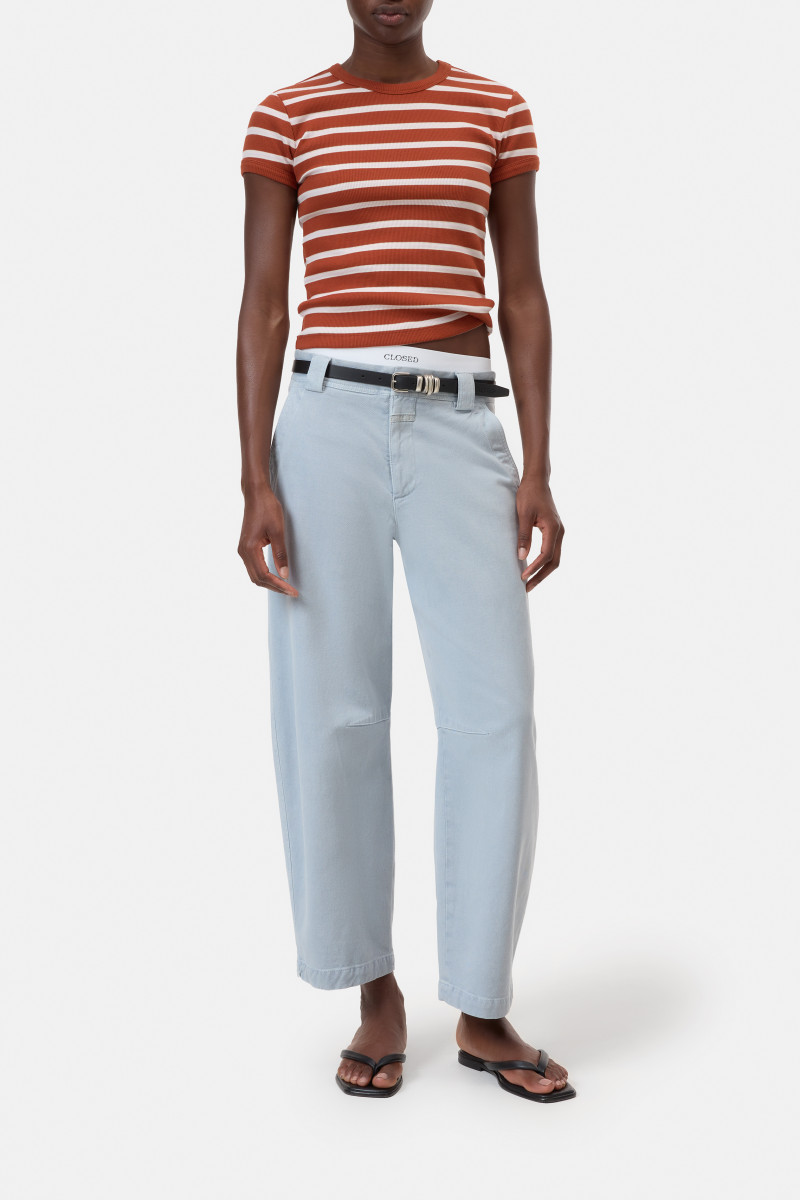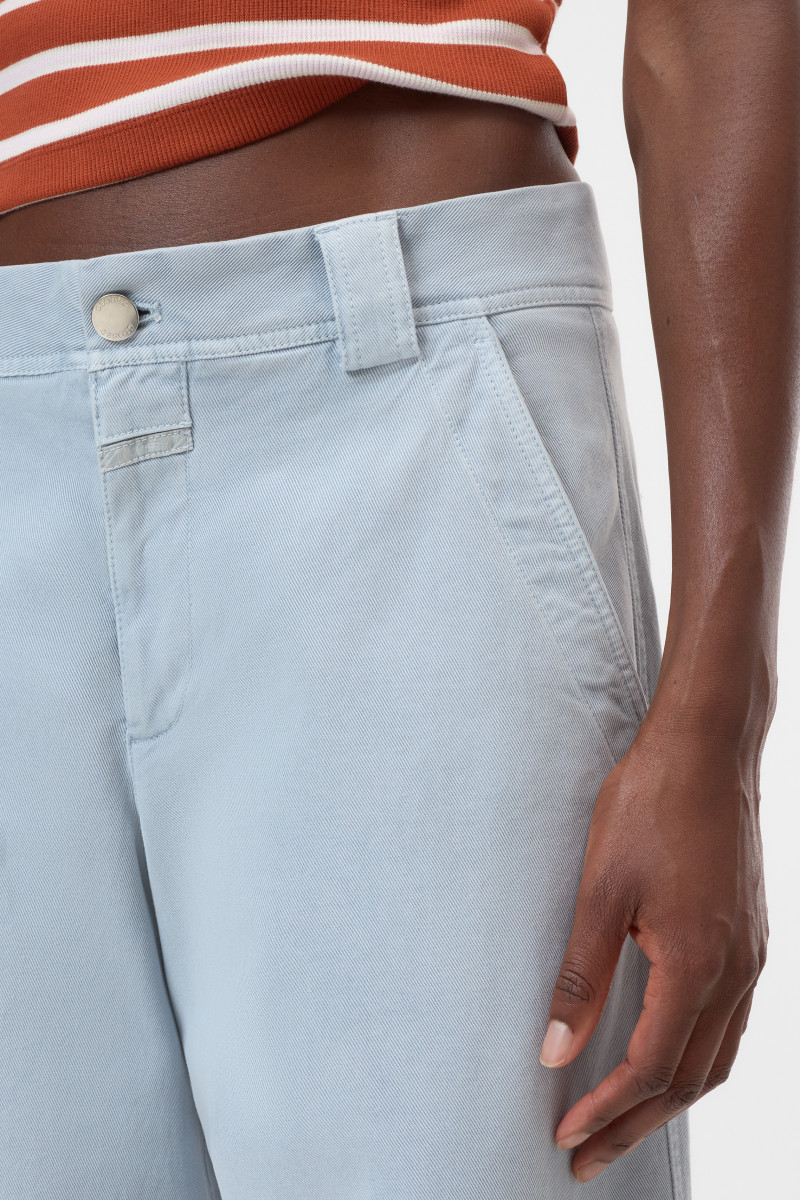 Durch Pigment-Garment-Dye entsteht eine weiche, verblasste Optik, indem Farbpigmente die Stoffoberfläche färben. Die Jeans Romi präsentiert sich mit mittlerer Leibhöhe und verkürztem Bein im charakteristischen Barrel-Fit. Französische Taschen mit Worker-Steppnähten zieren die Vorderseite, während Paspeltaschen mit Knopfdetail die Rückseite schmücken. Abnäher an den Knien formen die markante Barrel-Silhouette und das Heritage-Closed-Flylabel rundet das Design ab.