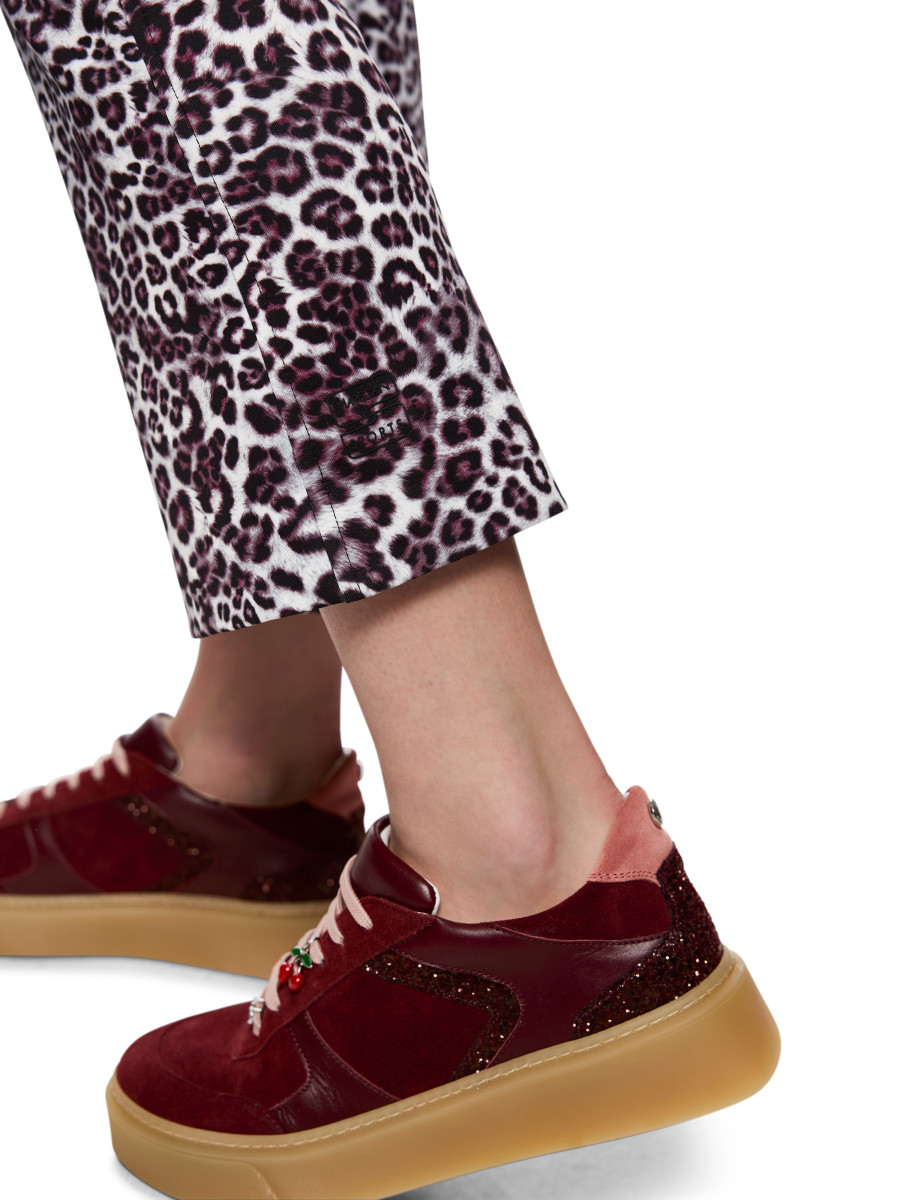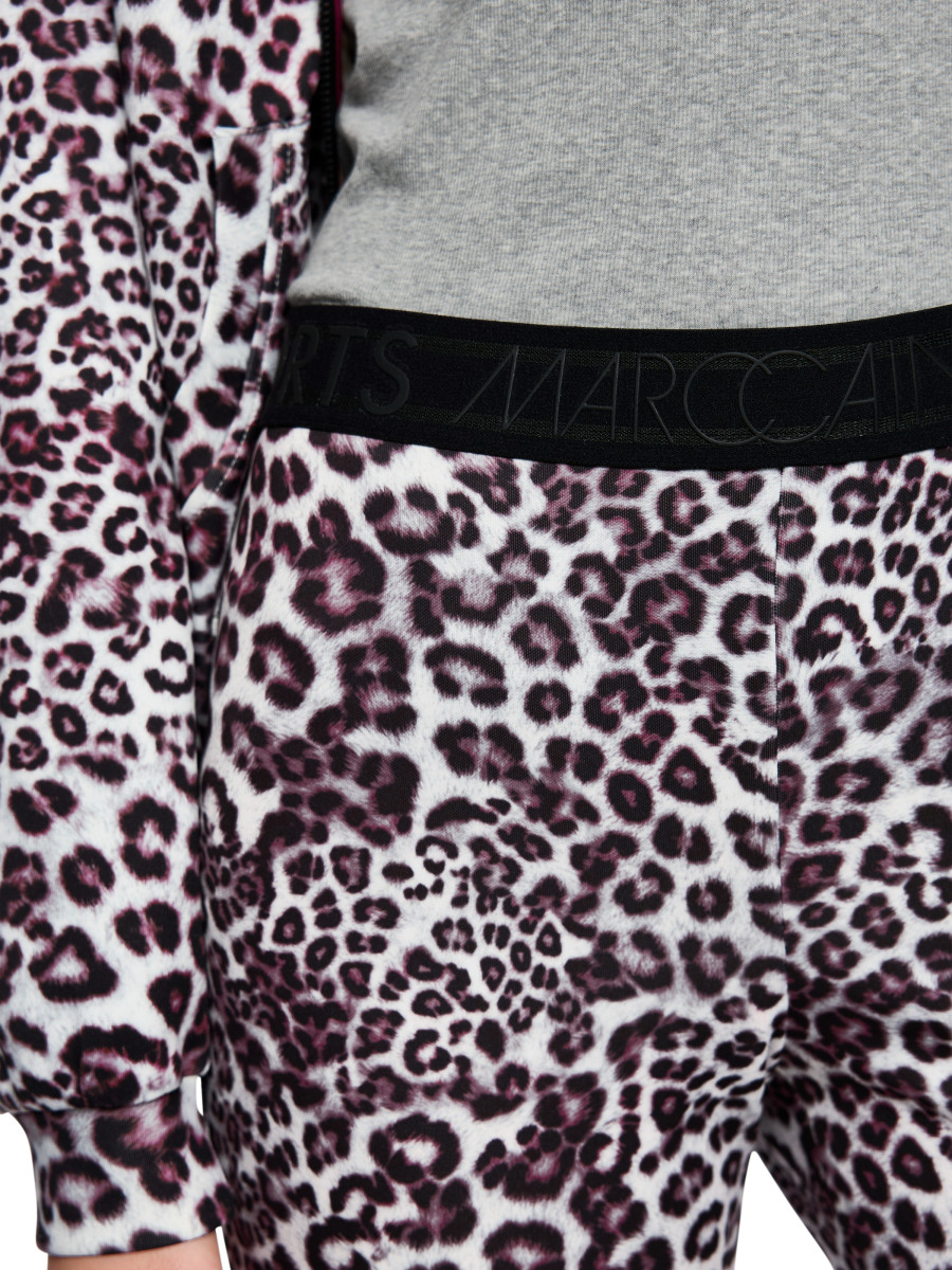 Leggings SOFIA mit Leo Print|Das Modell SOFIA präsentiert sich mit einer leicht verkürzten Beinlänge und einem eng anliegenden Schnitt. Das Bein ist nach unten hin leicht ausgestellt. Das Material ist angenehm weich und elastisch. Die Hose ist zusätzlich mit einem Gummibund mit Marc Cain Logo versehen, was einen hohen Tragekomfort garantiert. Ein echter Hingucker ist der trendige Leo-Print.|Figurnahe Form|Leomuster|Gummibund|FREDERICA - FEMININE FIT - REGULAR - Beinlänge: 28""|Das Model ist 179 cm groß und trägt N3/38.