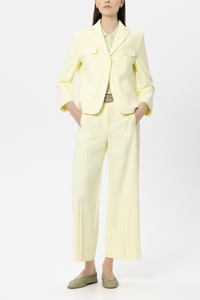 Locker geschnittene Hose mit leicht verkürztem Bein aus softem Baumwoll-Viskose-Stretch. Die Hose verfügt über Gürtelschlaufen mit Nietendetails, zwei angedeutete Fronttaschen und zwei aufgesetzte Gesäßtaschen.