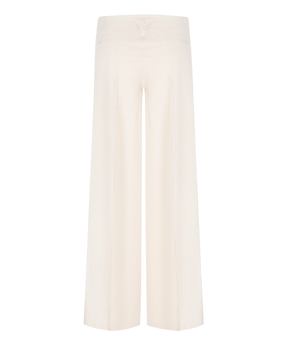 Zeitlose Damenhose Addison in Schwarz mit feinem Nadelstreifenmuster. Die klassische, gerade geschnittene Hose sorgt für einen gepflegten Auftritt im Büro und bei formellen Anlässen. Durch ihr zurückhaltendes Design lässt sie sich vielseitig kombinieren und wirkt sowohl zu Blazern als auch zu lässigen Oberteilen elegant.Lief.-Art-Nr: Addison/8727046203