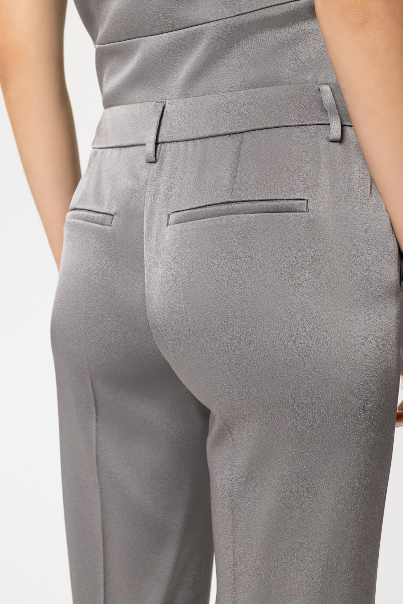 Bootleg-Hose aus fließendem Triacetat-Crêpe mit matt glänzender Satin-Optik und Bundfalten. Zwei seitliche Eingrifftaschen und zwei Fake-Taschen auf der Rückseite ergänzen das Design. Unser Model ist 178 cm groß und trägt Größe 36.
