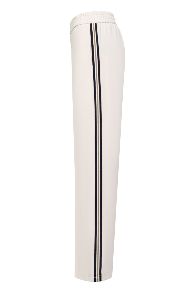 Die Damen Hose Camilla H überzeugt mit einem Pull-on-Stil und einer hohen Leibhöhe, die für einen bequemen und eleganten Sitz sorgt. Das weite Bein und der elastische Gummibund bieten angenehme Bewegungsfreiheit, während abgenähte Biesen sowie beidseitige Nahttaschen und rückwärtige Abnäher eine dezente, strukturierte Optik schaffen. Ein Galonstreifen an der Seitennaht setzt einen sportiven Akzent, und der fließende, leichte Stoff mit feiner Oberflächenstruktur verleiht der Hose einen eleganten Fall.Lief.-Art-Nr: Camilla H/027451/6933