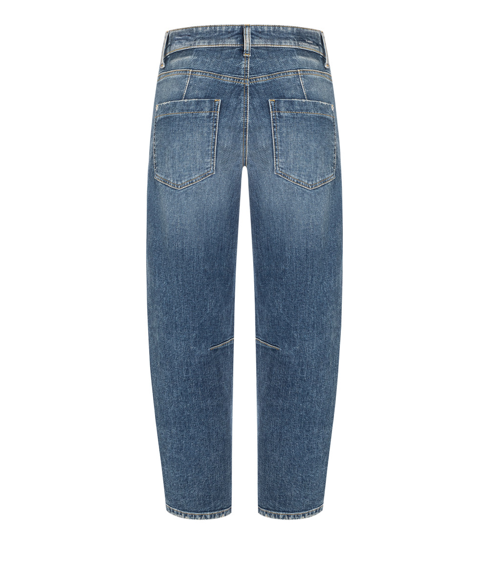 Setzen Sie ein modisches Statement mit dieser lässigen Jeans im modernen Schnitt. Die Hose kombiniert einen weiten Oberschenkelbereich mit einem nach unten zulaufenden Bein, was für eine angesagte Silhouette sorgt. Typisch für diesen entspannten Look sind die auffälligen Knieabnäher, die dem Design eine markante Struktur und eine ergonomische Passform verleihen. Gefertigt aus robustem und gleichzeitig komfortablem Denim aus recycelter Baumwolle, steht dieses Kleidungsstück für nachhaltige Mode und hohe Langlebigkeit. Die klassische 5-Pocket-Form und der hohe Bund bieten optimalen Tragekomfort und vielseitige Kombinationsmöglichkeiten für einen lässigen Alltagsstil. Mit diesem Modell wählen Sie eine Hose, die sowohl in puncto Style als auch in Sachen ökologische Verantwortung überzeugt. Ein zeitloses Essential für bewusste Trendsetter.