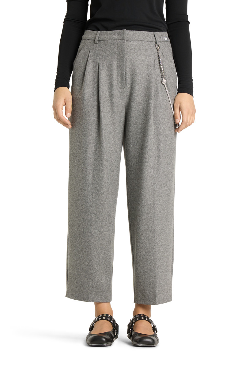 Diese stilvolle Hose von CAMBIO vereint zeitlose Eleganz mit modernem Design und höchstem Tragekomfort. Der gerade, leicht verkürzte Schnitt mit eleganten Bundfalten verleiht jedem Outfit eine raffinierte Note und sorgt für eine schmeichelhafte Silhouette. Ein besonderes Highlight ist die abnehmbare Perlenkette an der Gürtelschlaufe, die als modisches Statement überzeugt und der Hose eine individuelle Note verleiht. Gefertigt aus einem hochwertigen, formstabilen Materialmix, bietet das Modell einen angenehmen Sitz und ist die perfekte Wahl für stilbewusste Looks – ob im Büro, zu besonderen Anlässen oder im Alltag. Kombiniert mit Bluse, Strick oder Blazer entsteht ein vielseitiger Look, der Trendbewusstsein und Klasse ausstrahlt.