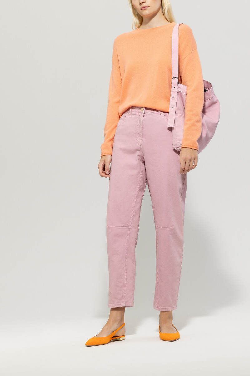 Looseleg-Pants aus Authentic-Twill-Denim im klassischen Five-Pocket-Design mit Gürtelschlaufen. Die leicht gebogene Silhouette wird durch den verkürzten Schnitt und die formgebenden Nähte am Knie hervorgehoben. Unser Model ist 178 cm groß und trägt Größe 36. Maschinenwäsche Knopf- und Reißverschluss