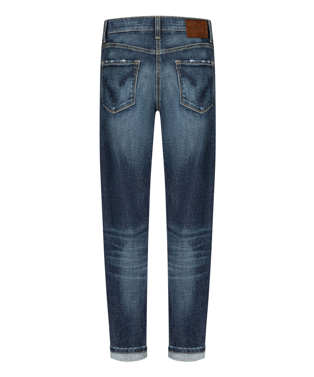 Der umgeschlagene Saum unterstreicht den lässigen Charakter und macht die Hose ideal für Sneaker, Boots oder auch feminine Stilbrüche mit High Heels. Ob casual im Alltag oder stylisch kombiniert am Abend – diese Jeans bietet maximale Vielseitigkeit.