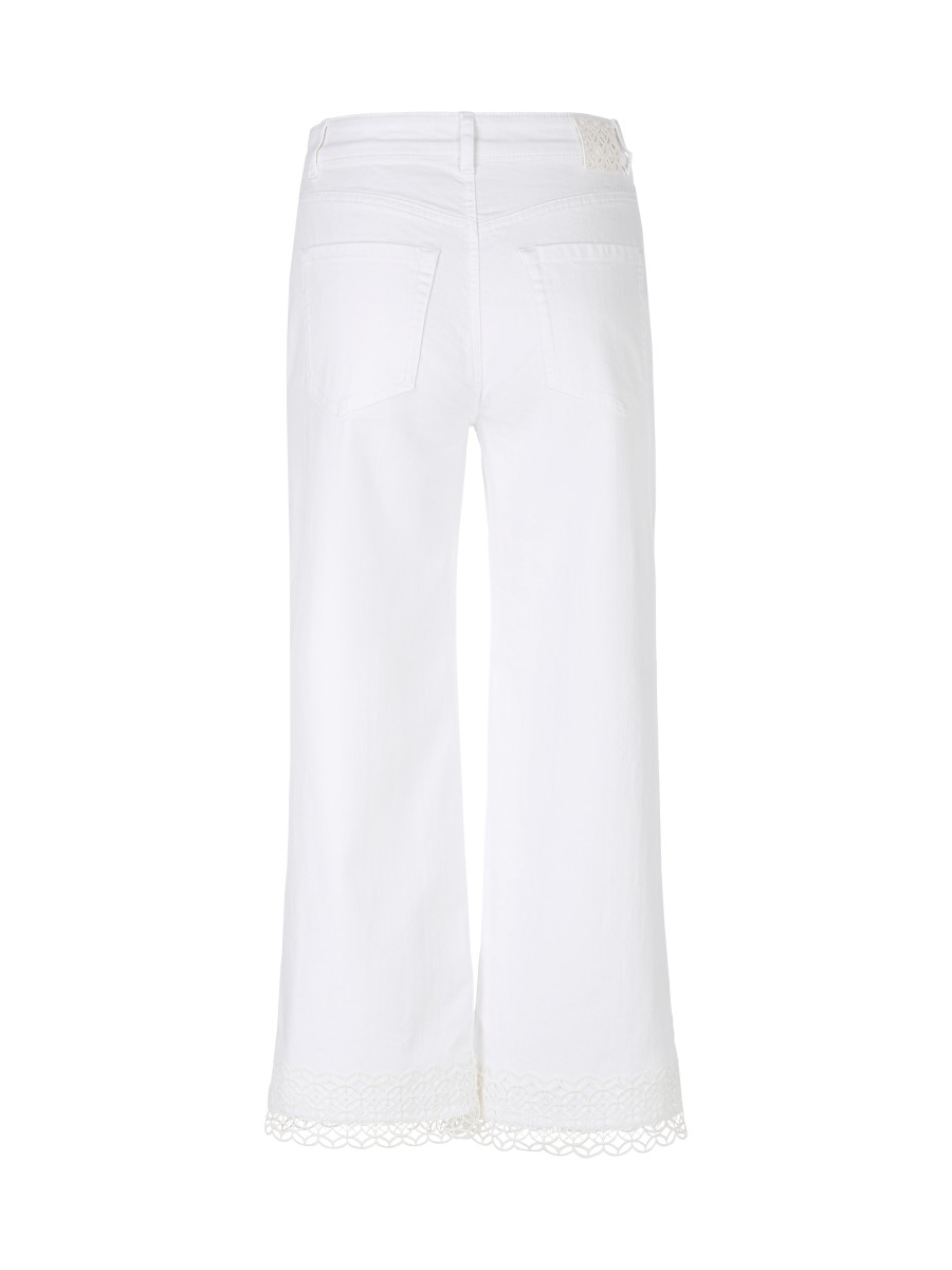Jeans "Rethink Together" Modell WIGAN | Modell WIGAN sind weite Five-Pocket Jeans mit hoher Taille und geradem, knöchellangem Bein. Den Saum schmückt eine breite Spitzenbordüre. Aus stretchiger Baumwolle, hat die Hose super Passform und Tragekomfort sowie einen ausgezeichneten Rücksprung, d.h., sie behält ihre Form. Sie wird verantwortungsbewusst produziert und trägt das Nachhaltigkeitslabel "Rethink Together". Five-Pocket Jeans | Spitzensaum | Rethink Together | WIGAN - WIDE FIT - HIGH - Beinlänge: 27"|Das Model ist 179 cm groß und trägt N3/38.