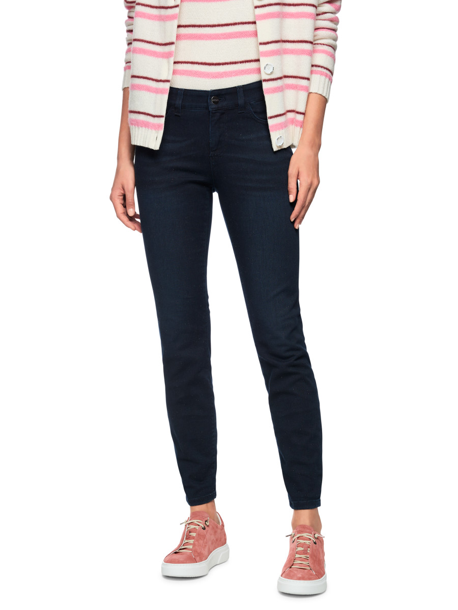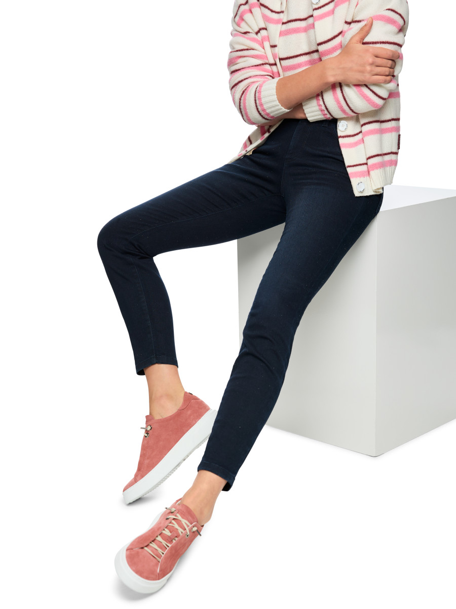 Jeans SILVI im Slim Fit mit Low Waist|Die Jeans SILVI überzeugt mit Slim Fit und einer niedrigen Leibhöhe. Das eng anliegende Bein ist mit Ministrasssteinen verziert. Als klassische Five-Pocket-Jeans wird sie mit Knopf und Zipper geschossen. Gefertigt aus einem hochwertigen Materialmix bietet sie hohen Tragekomfort und perfekte Passform. Eine stilvolle Jeans für vielseitige Kombinationen im Alltag und Office. Five-Pocket-Jeans | Verkürztes Bein | Mit Ministrasssteinen verziert | SILVI - SLIM FIT - LOW - Beinlänge: 28"" | Das Model ist 179 cm groß und trägt N3/38.