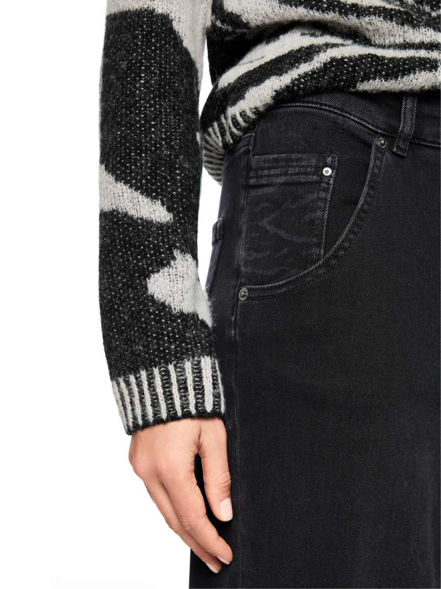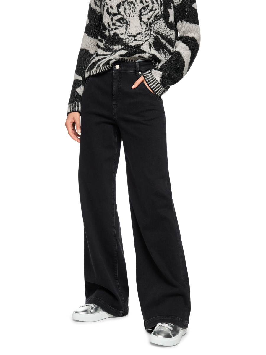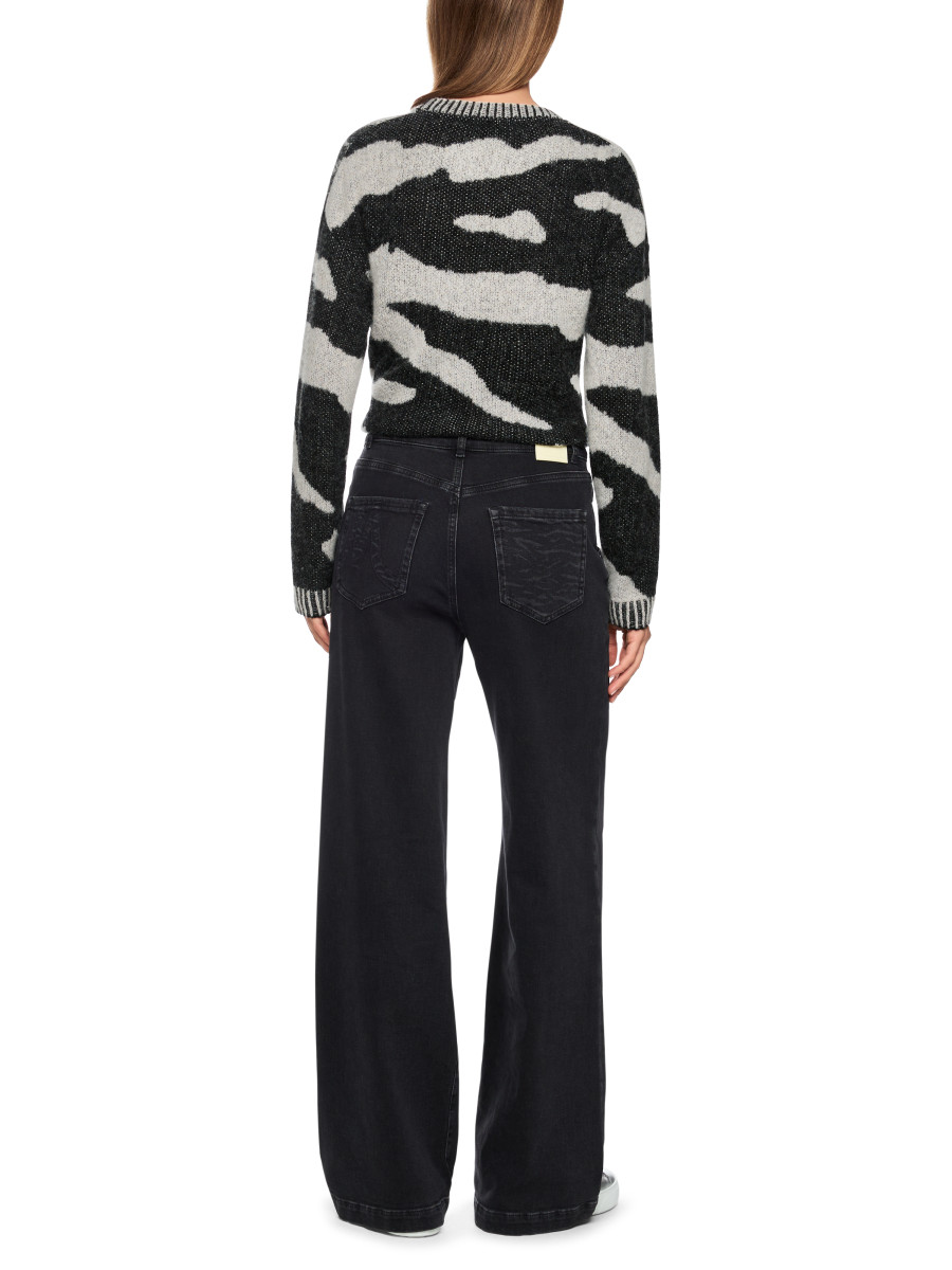Weite Five-Pocket Jeans aus weichfließender Baumwoll-Mischung. Dabei hat das Modell WARRI eine trendige Silhouette mit hoher Taille und extralangem Bein. Elasthan sorgt für super Tragekomfort und gute Passform. An den Taschen der Vorder- und Rückseite befinden sich kleine Animal Print Details. Ein Must-have für trendige Looks.