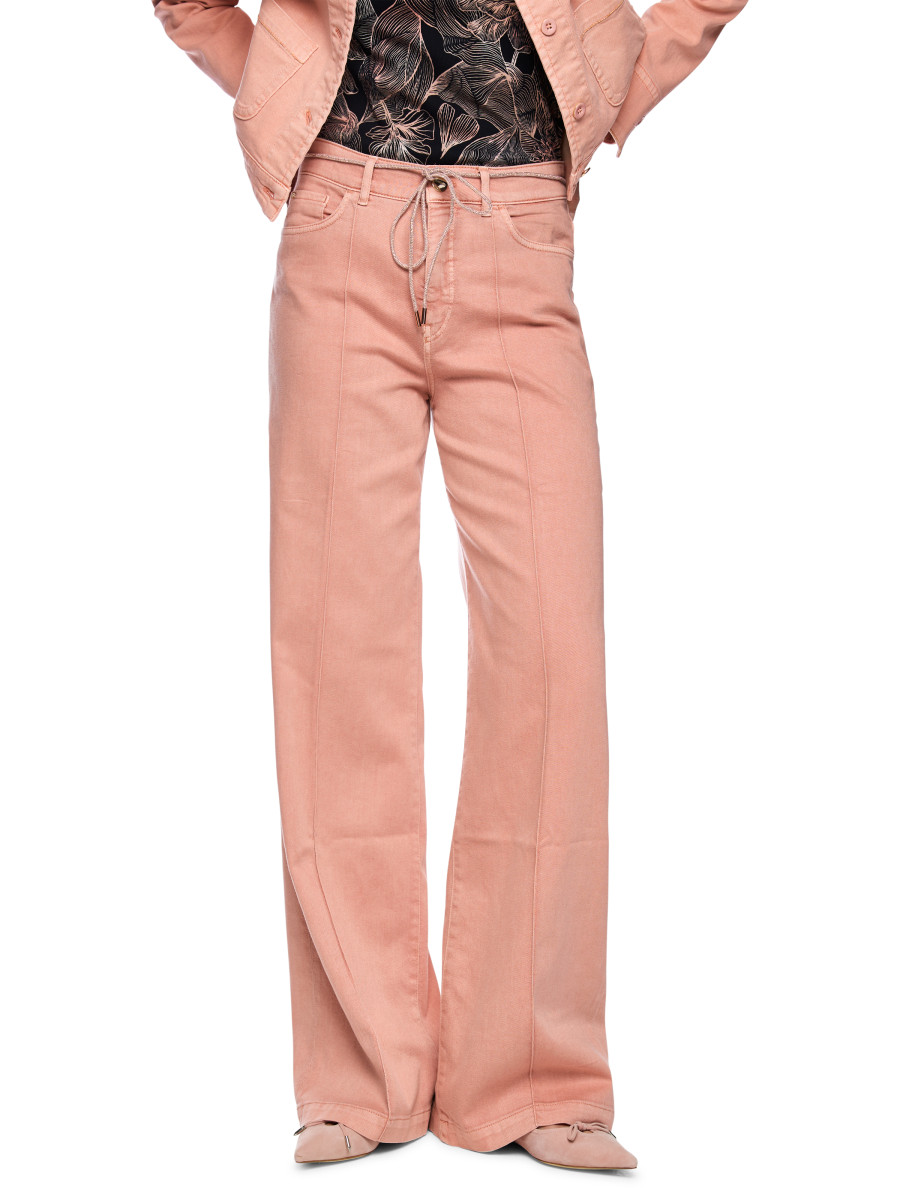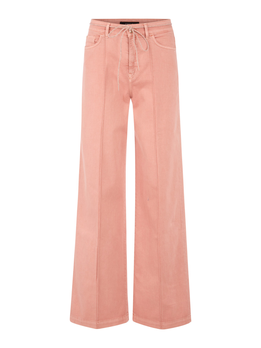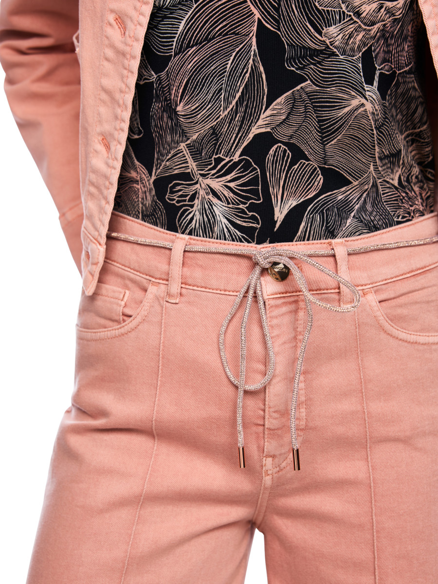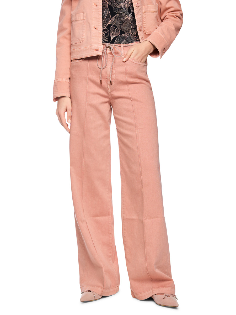 Jeans WARRI Wide Fit mit Strasskordel | Die Jeans WARRI präsentiert sich im Wide Fit mit hohem Bund und modern verlängertem, weitem Bein. Eine abgenähte Biese entlang der Beinvorderseite unterstreicht die klare Linienführung. Highlight ist die edle Strasskordel, die als Gürtel fungiert und dem Design einen besonderen Akzent verleiht. Der Look ist stilvoll, modern und vielseitig kombinierbar. Strasskordel als Gürtel | Weites Bein | Five-Pocket-Jeans | WARRI - WIDE FIT - HIGH - Beinlänge: 34"" | Das Model ist 179 cm groß und trägt N3/38.
