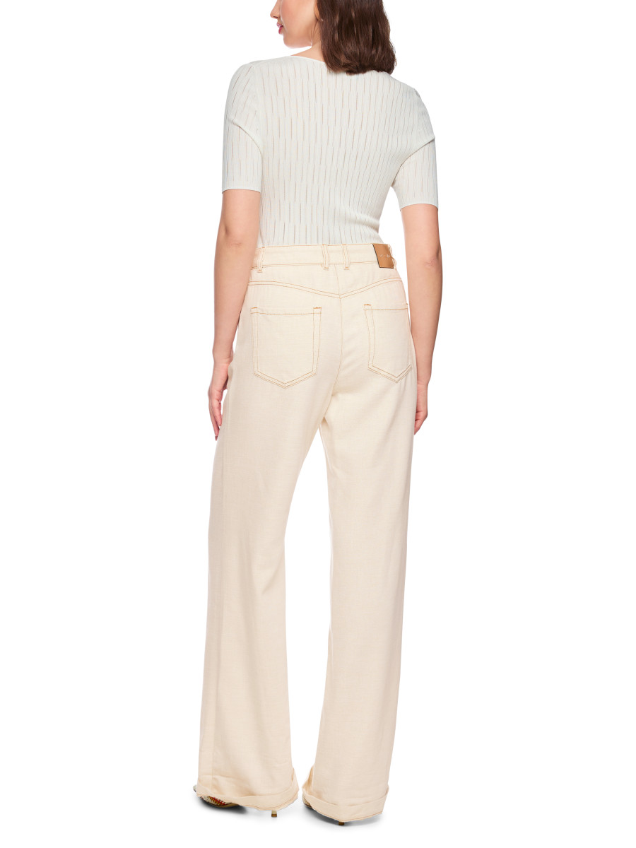 Die Jeans WARRI überzeugt mit weiter Passform und hohem Bund für eine moderne Silhouette. Der Baumwoll-Viskose-Mix mit Stretch sorgt für optimalen Tragekomfort. Edles Highlight sind das goldfarbene Kontraststitching und das schimmernde Lurexgarn. Klassische Five-Pocket-Form mit Münzgeldtäschchen, Gürtelschlaufen, Reißverschluss und glänzendem Logoknopf.