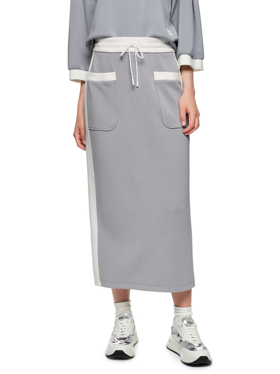 Sportlicher Midirock | Bequemer Rock in Midilänge mit praktischem Gummibund und Kordelzug. Die weiche Materialmischung ist elastisch und angenehm auf der Haut. Ein Highlight sind die Kontraststreifen an den Seiten und den Taschen. Ein Schlitz in der hinteren Mitte bietet zusätzliche Bewegungsfreiheit. Ein kleines Marc Cain Sports Logo ist zusätzlich auf der Tasche angebracht. Gerader Schnitt | Gummibund | Schlitz | Mit Taschen | Das Model ist 179 cm groß und trägt N3/38.
