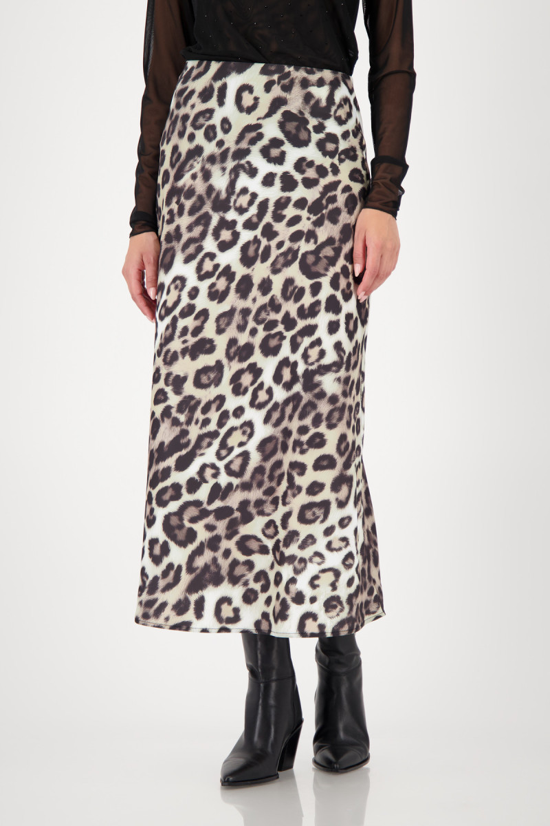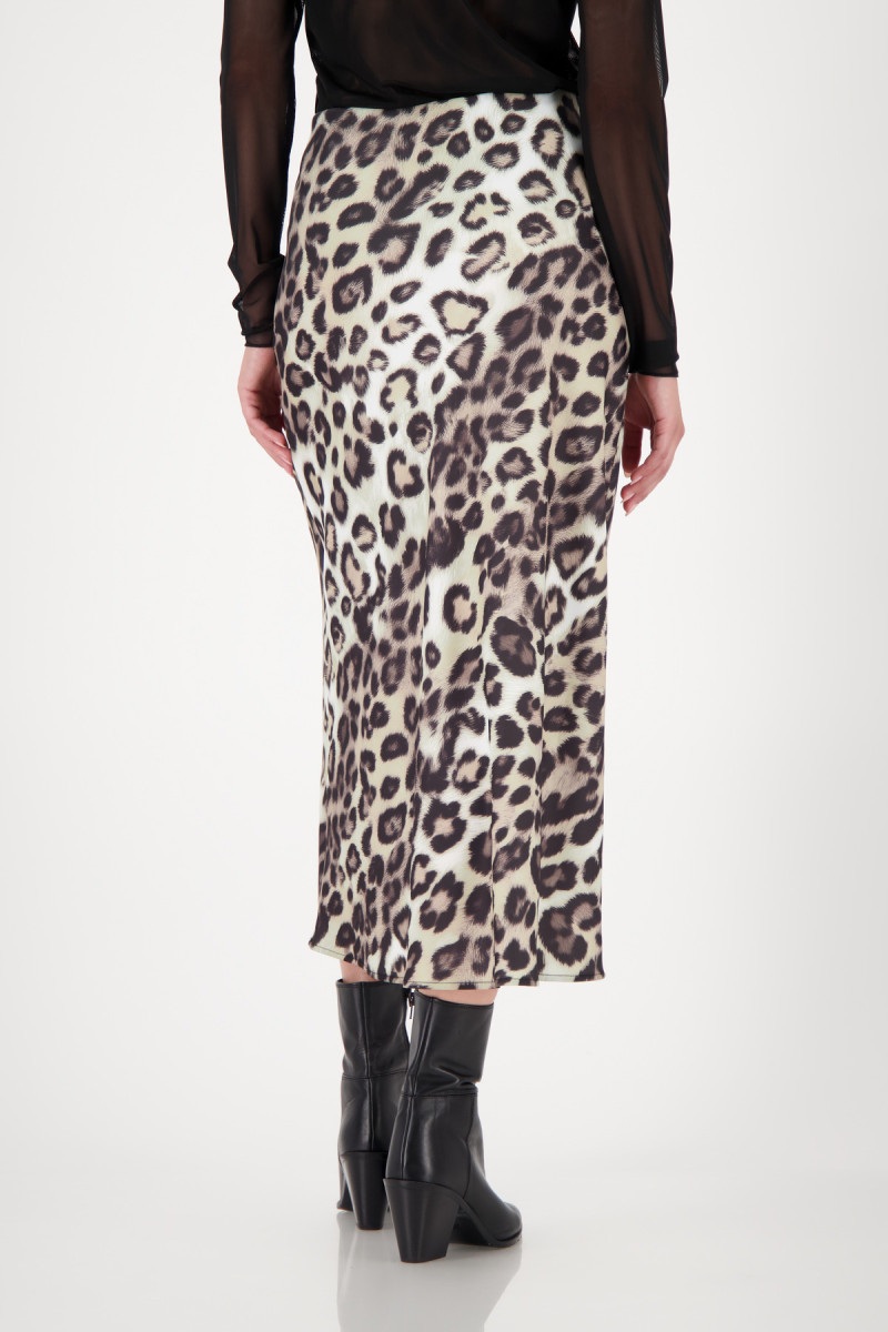 Dieser Satin Rock besticht durch sein Leomuster und den elastischen Bund.