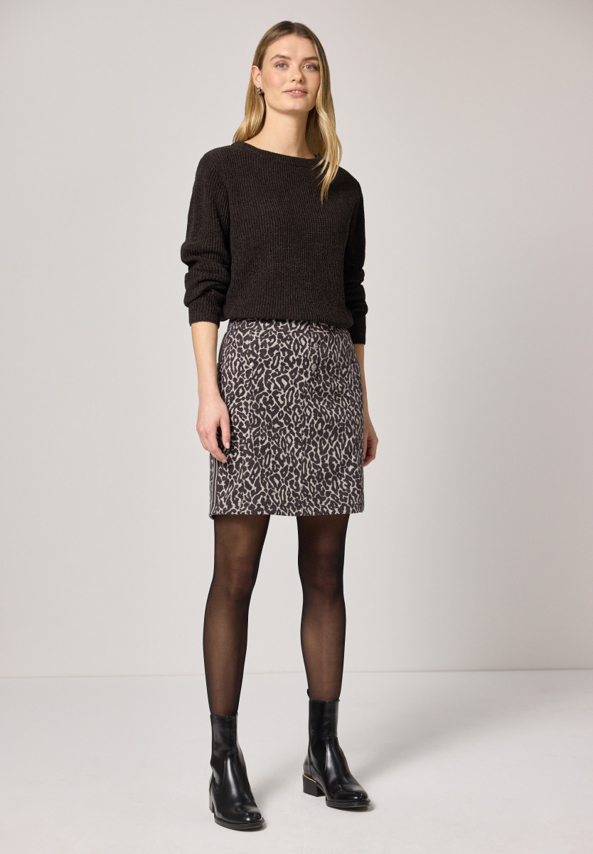 Im Style Maja überzeugt dieser Rock von Street One für Damen mit trendigem Leo-Muster und moderner Woll-Optik. Der Gallonstreifen an der Seite setzt einen sportiven Akzent, während aufgesetzte Taschen und Knopfverschluss für einen lässigen Look sorgen. Rock in Woll-Optik Casual Mid Waist Knielang Modern Material: 90% Polyester, 10% Viskose
