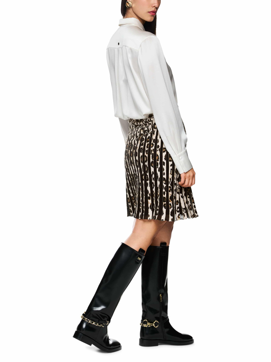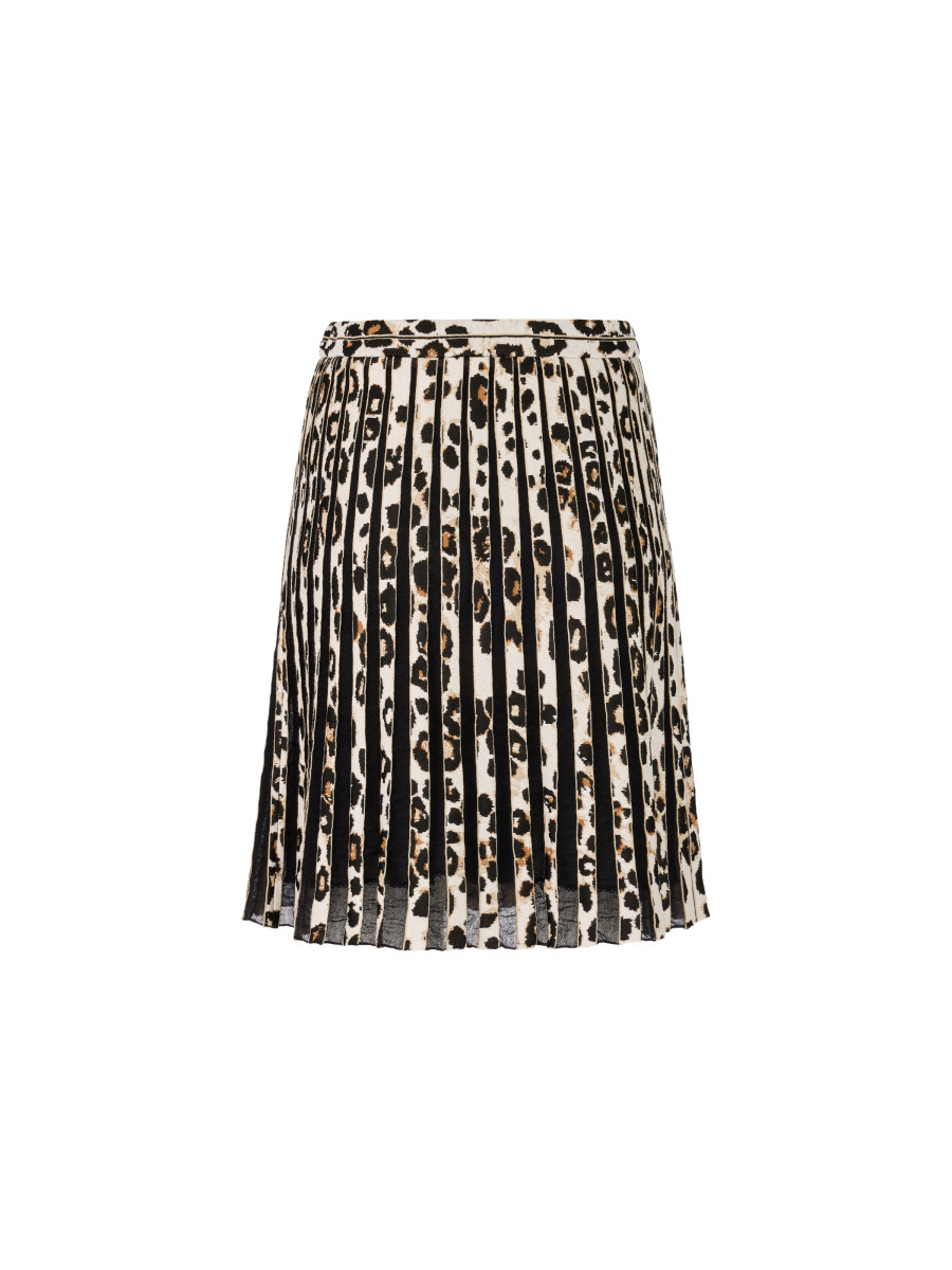 Der Minirock im trendigen Leo-Print mit semi-transparenten Streifen ist ein absolutes Must-Have! Der Gummizug am Bund sorgt für eine perfekte Passform, der integrierte Unterrock garantiert zusätzlichen Komfort. Die lockere Form sorgt für einen lässigen, modernen Look. Der Rock wird am Standort Deutschland gestrickt und auch veredelt. Die Weiterverarbeitung der einzelnen Teile erfolgt in europäischen Partnerbetrieben. Damit ist das Modell „Knitted in Germany“.