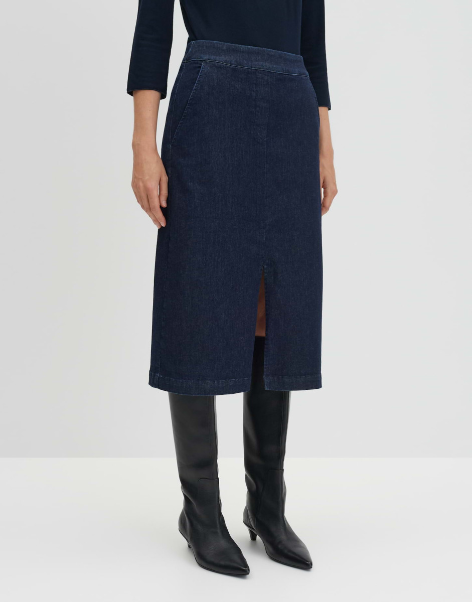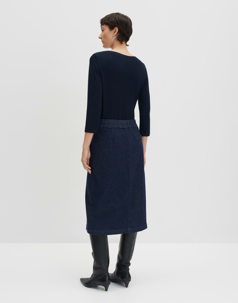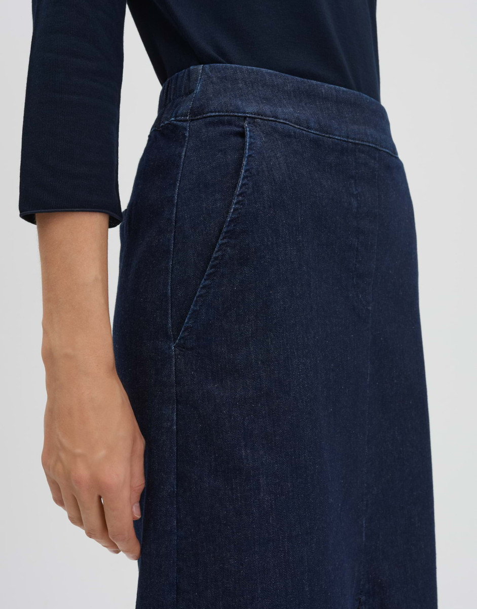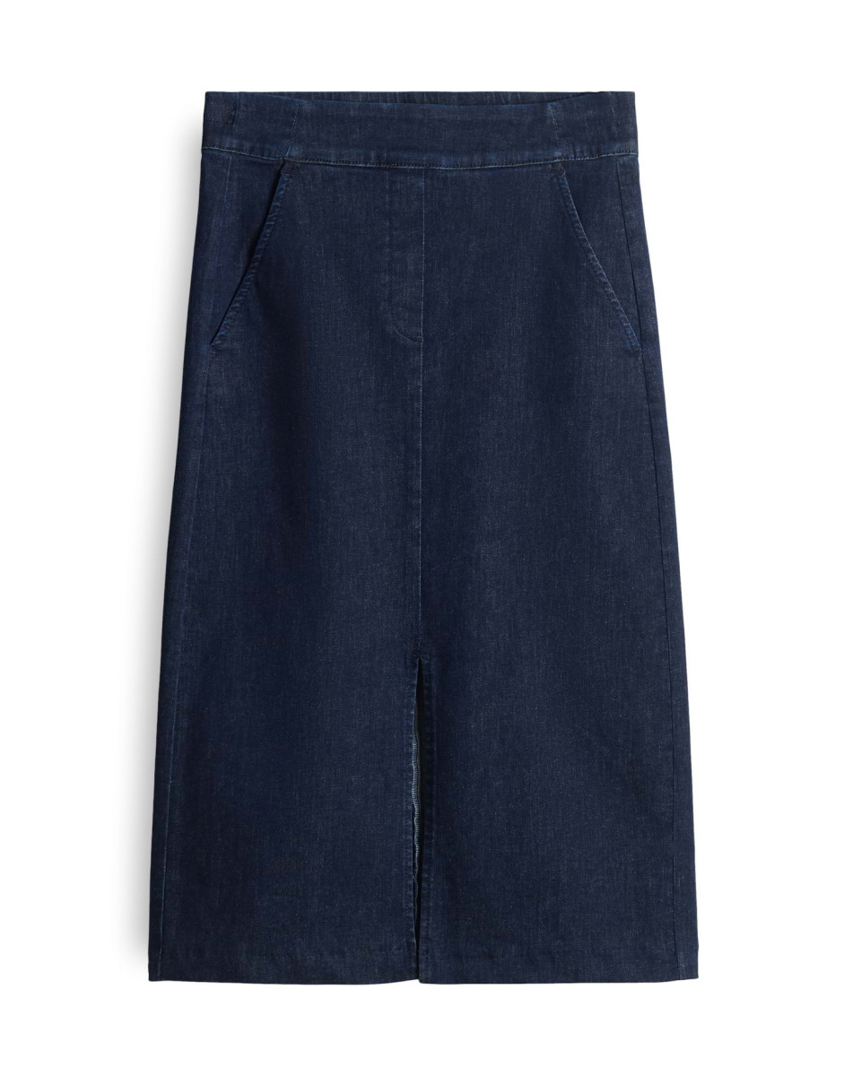 Gefertigt aus weichem, elastischem Denim mit angenehmem Griff und in einer klassischen Rinsed-Waschung, bietet der Rock nicht nur Stil, sondern auch hohen Tragekomfort. Die französischen Taschen vorn und eine Zier-Paspeltasche hinten sorgen für subtile Akzente. Der Zier-Zip-Fly und ein elastischer Gummibund am Rücken ergänzen das Design mit praktischen sowie ästhetischen Elementen. Der Gehschlitz vorne rundet den Look ab und ermöglicht optimale Bewegungsfreiheit.