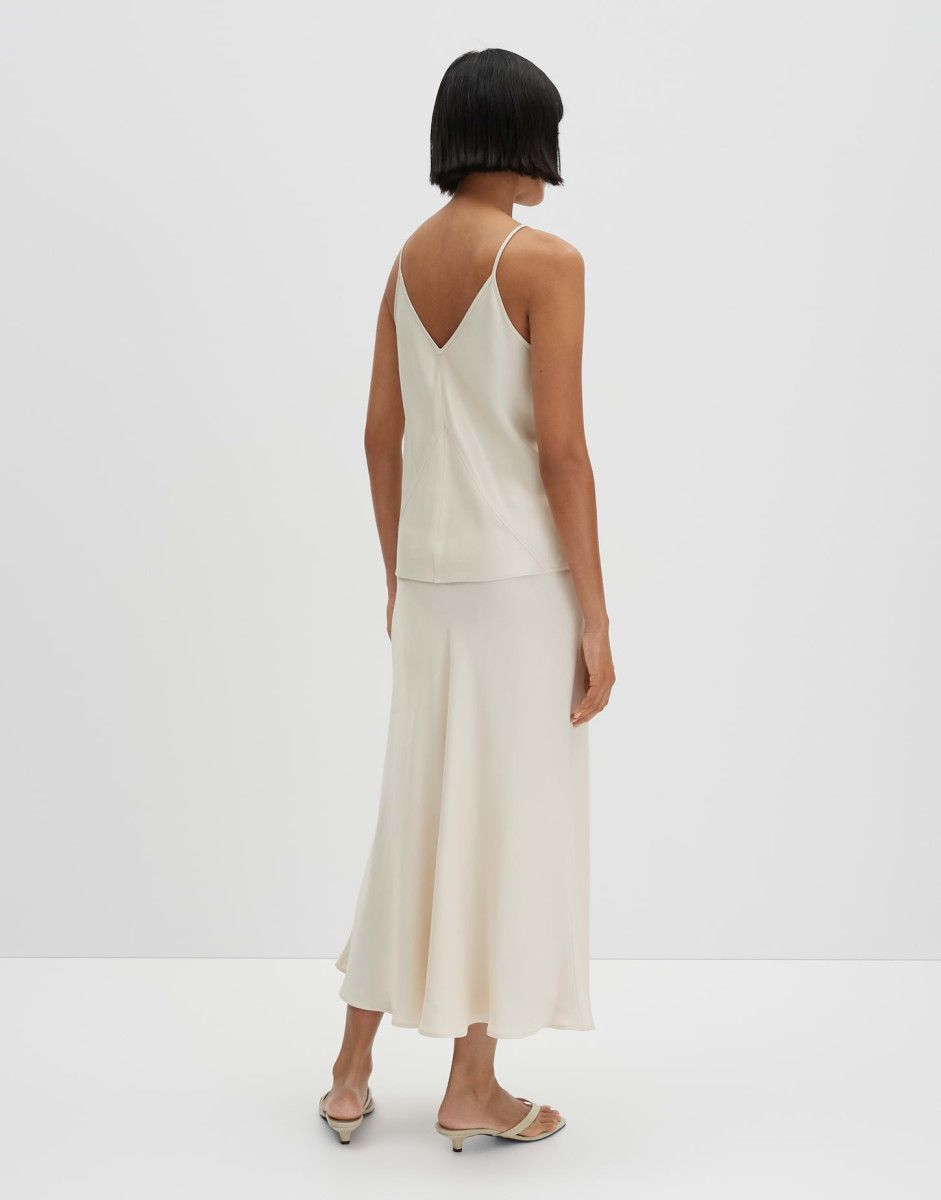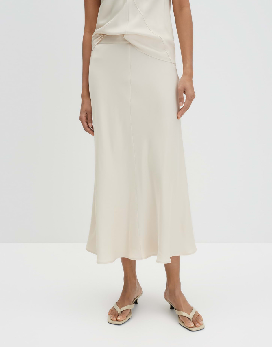Dieser Rock besticht durch seine lockere Passform und einen leicht ausgestellten Schnitt in moderner Midi-Länge. Mit einer hinteren Länge von ca. 83 cm (in allen Größen) bietet er eine schmeichelhafte Silhouette. Der Rock ist aus glänzendem Satin gefertigt, hat einen glatten Griff und überzeugt mit einer schimmernden Oberfläche sowie einem weich fließenden Fall. Ein elastischer Gummibund sorgt für zusätzlichen Komfort. Das Model ist 176 cm groß und trägt Größe 36.