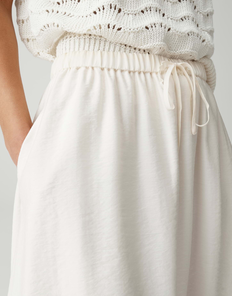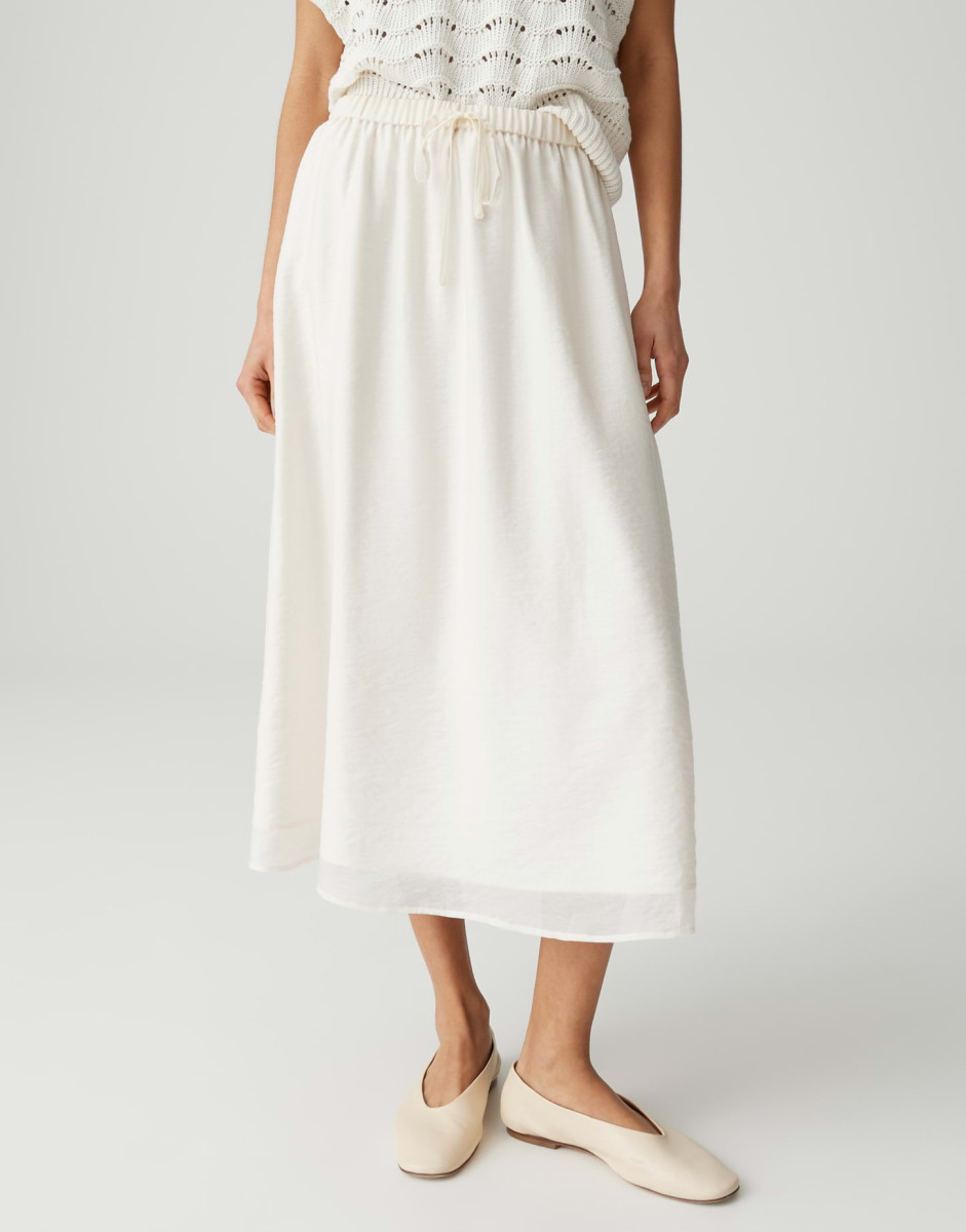 Der Rock Ronna Flow besticht durch seine feminine A-Linie und den fließenden Fall in Midi-Länge. Das leichte Webmaterial ist dezent transparent und sorgt für ein angenehmes Tragegefühl, während Nahttaschen an den Seiten und eine Kräuselung am Bund praktische Details bieten. Der elastische Gummibund mit Kordel sorgt für Komfort und eine variable Passform.Lief.-Art-Nr: 10551414087423
