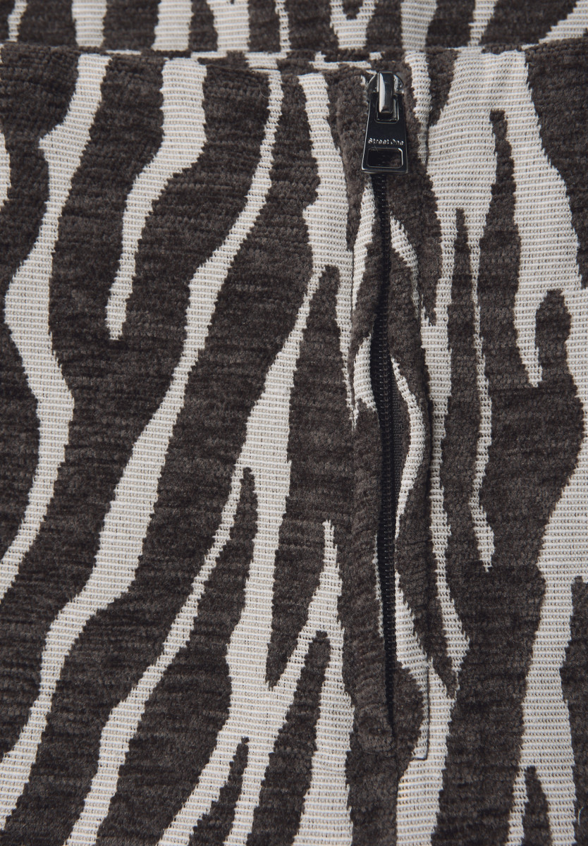 Im Style Maja zeigt sich dieser knielange Rock von Street One für Damen mit modernem Zebra-Jacquard und trendigem Animal Print. Der rückseitige Zipper sorgt für einen bequemen Einstieg, während die seitlichen Taschen lässige Akzente setzen. Die softe Qualität garantiert ein angenehmes Tragegefühl – perfekt für ausdrucksstarke Looks. Knielanger Rock Seitliche Taschen Animal Print Zipper hinten Angenehmer Tragekomfort Material: 100% Polyester