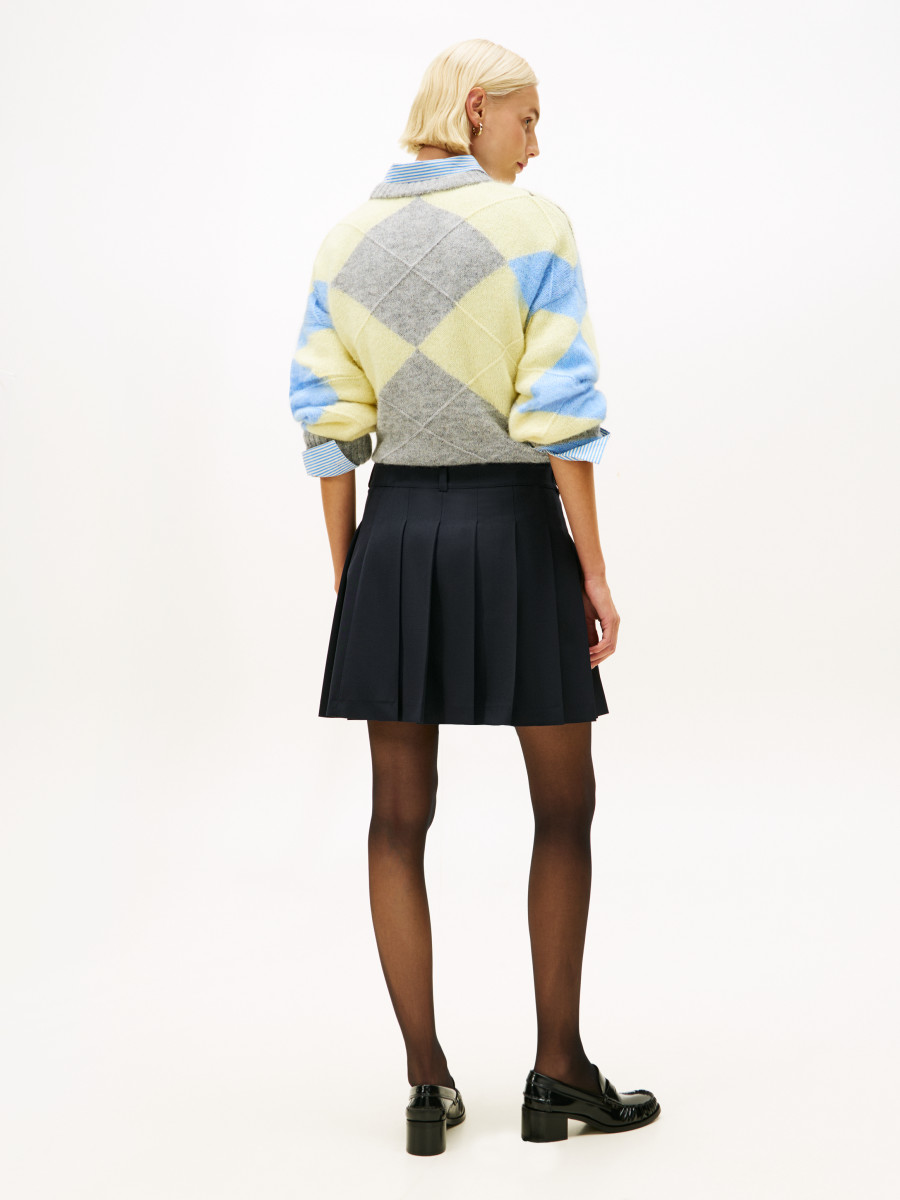 Wollmix mit Stretch | Falten-Design | Seitlicher Reißverschluss mit Knopf | Tommy Hilfiger-Branding | Regular Fit | Mini-Länge