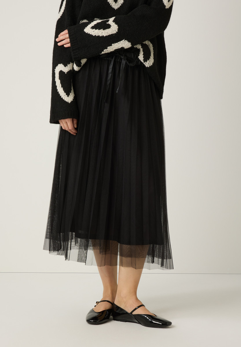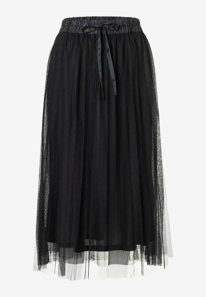 Der feminine Meshrock von MORE & MORE mit glänzendem Satin-Gummibund kann mit leichtem Pullover genauso gut gestylt werden wie mit eleganter Satinbluse oder sportivem Shirt.